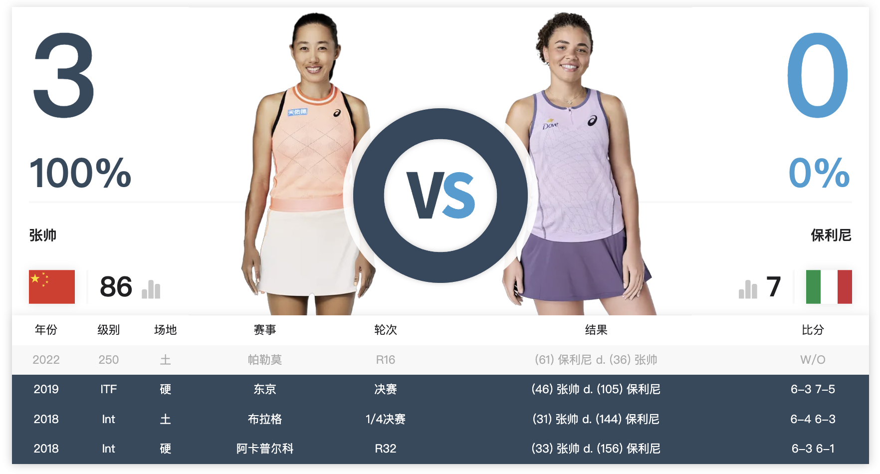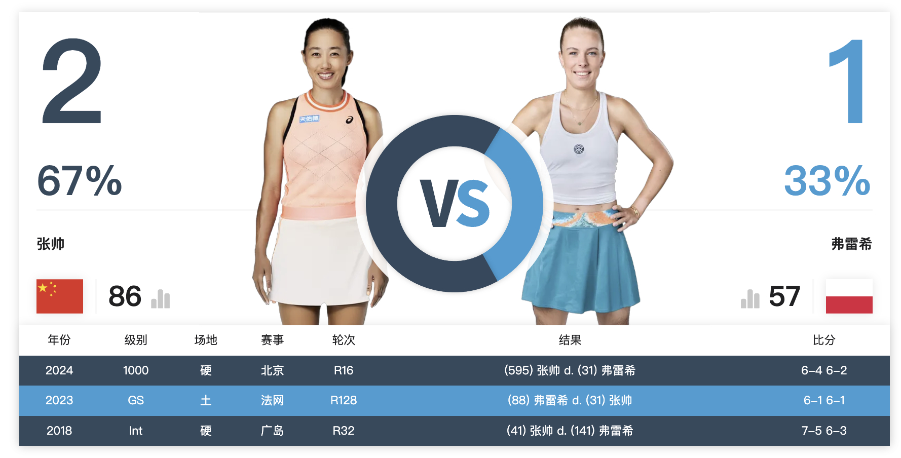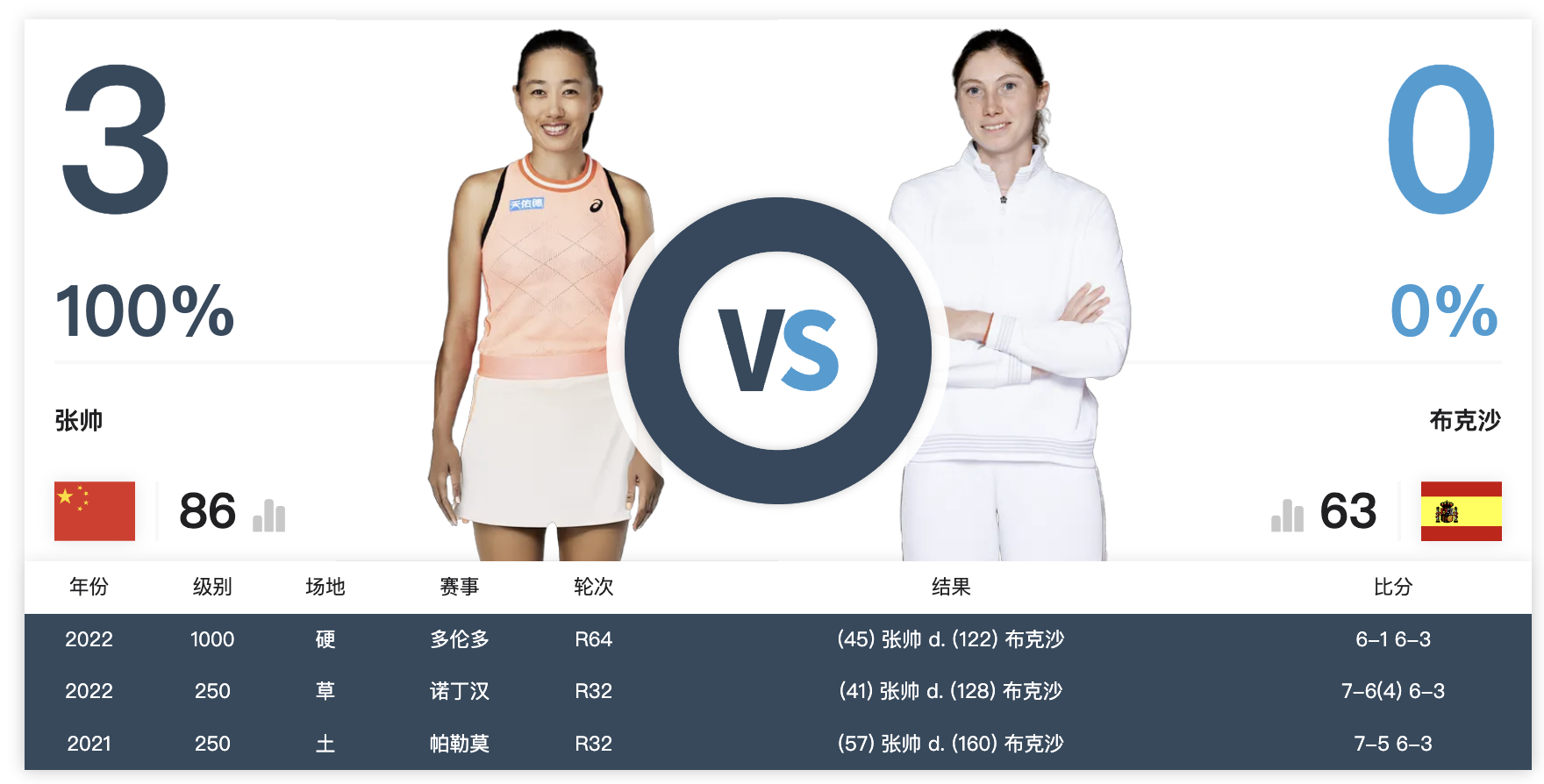 张帅与签表中剩余对手的交手记录⬇️