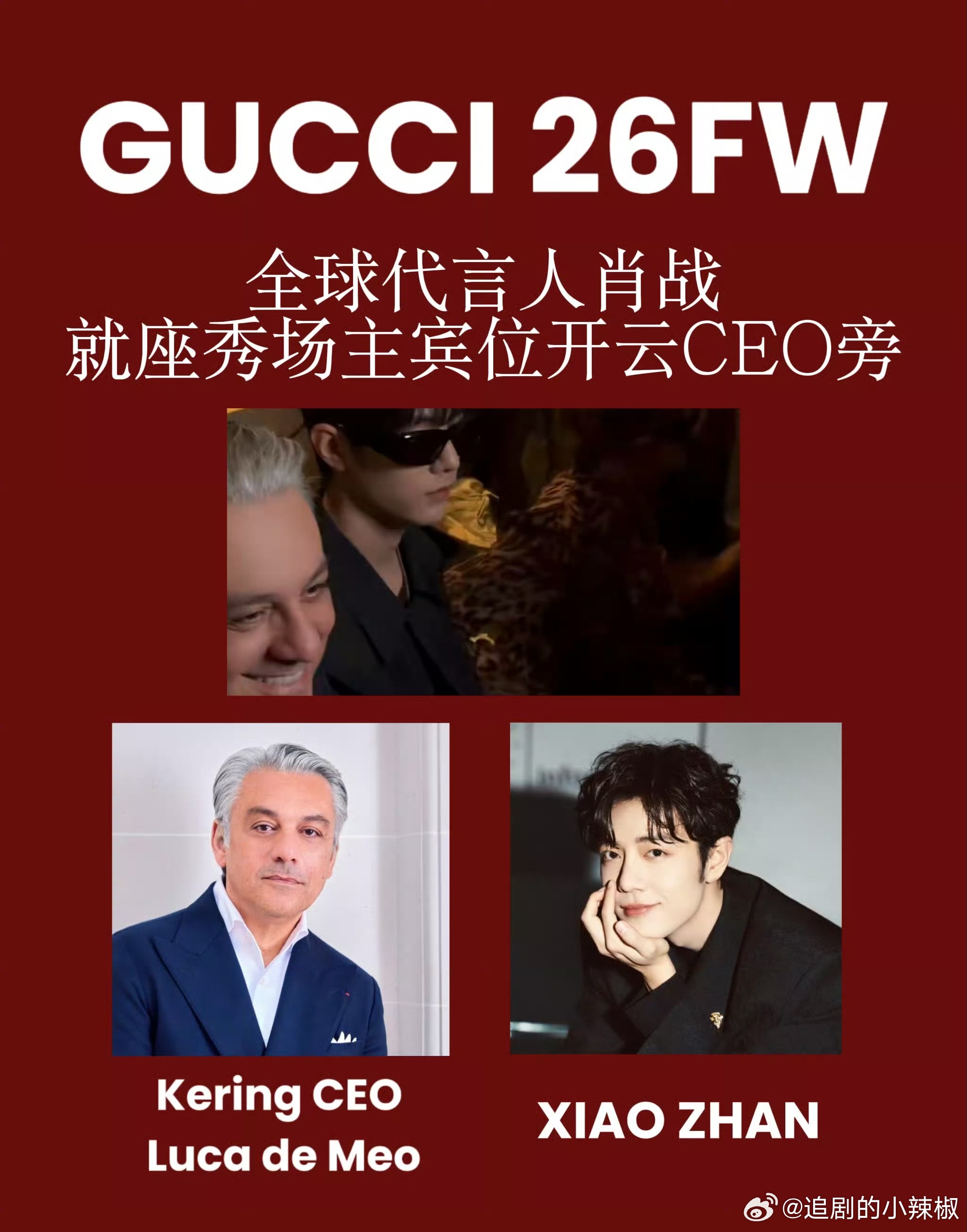 肖战gucci大秀下班 肖战米兰时装周待遇,连续4年坐在TODS总裁身边,Gucci看秀座位在开云集团Ceo旁边,这座位很C了,给内🐟争面儿