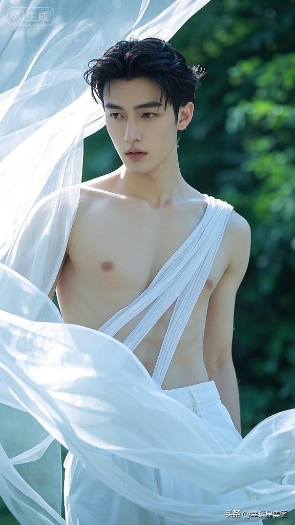 夜晚的宁静,蝴蝶围绕,古风美男子在躺椅上沉睡。