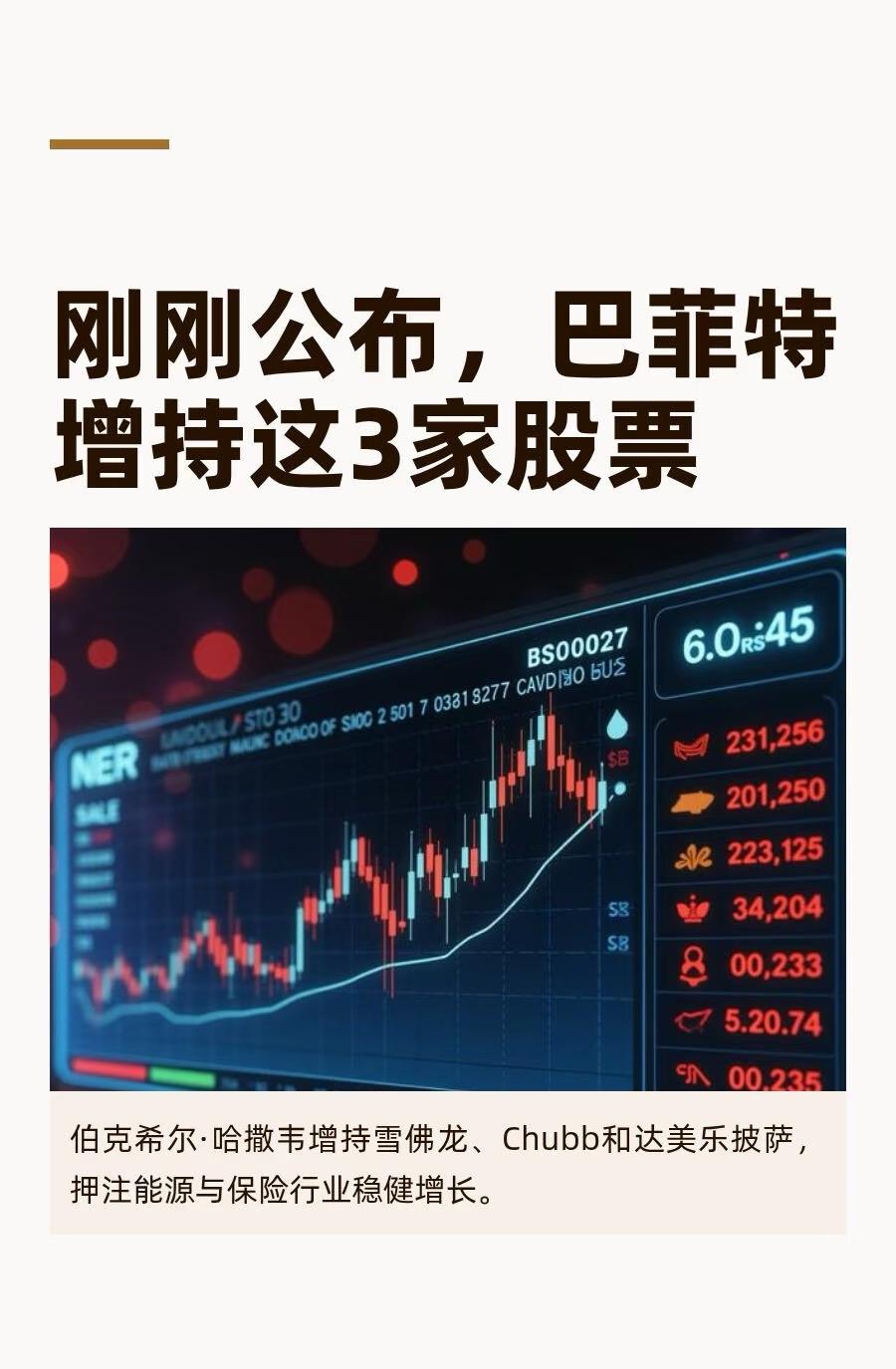 刚刚公布,巴菲特增持这3家股票 伯克希尔·哈撒韦公司最新13F报告显示,增持雪佛龙、Chubb和达美乐披萨,反映对能源、保险和餐饮行业的看好。