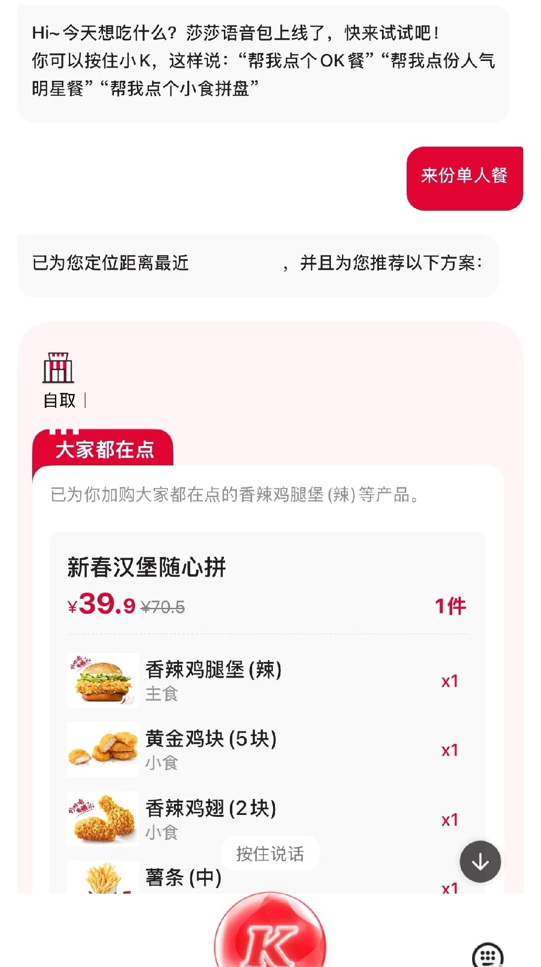 肯德基用上阿里千问的AI点餐了!「小K」能听懂复杂需求,比如10个人300块以内的工作餐,自动配好套餐。这可不是个例,AI开始帮人做消费决策,以前说的AI改变商业模式,现在慢慢成真了,以后可能到处都能见到这类智能助手。