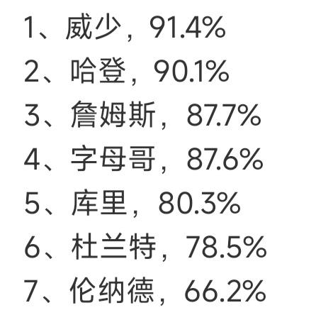 只看现役七位老将的出勤率,威少真厉害91%,哈登也有90%。 詹姆斯本来很高,这两年伤病很多下降不少。 库里职业生涯初期伤病多,老了后很稳定。 杜兰特就是那两年赛季报销。 伦纳德肯定垫底,本时代巨星排最后。[大金牙]