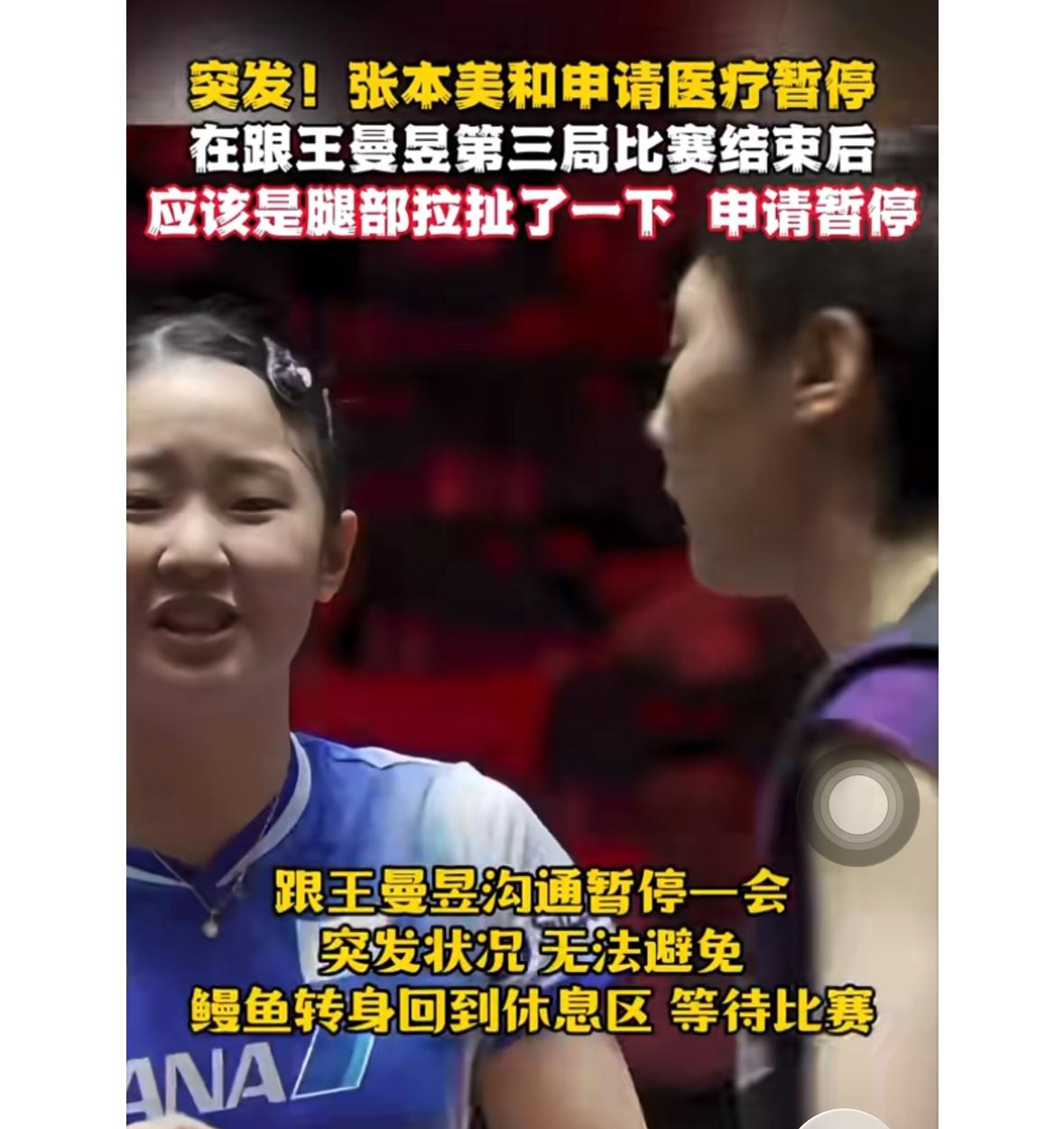 王曼昱大格局发言:希望美和早日康复,希望下一轮遇大迪! 新加坡大满贯2月28日女单1/4 决赛中, 王曼昱4:2张本美和, 第三局与第四局的局间, 张本美和申请医疗暂停。 赛后采访中王曼昱大格局发言: “大家都看到了,美和局间腿不舒服, 但她还是顽强的坚持完成比赛, 希望她可以早日康复, 下一轮将对阵大迪与温特的 胜出者, 我当然希望会师队友, 但不管遇到谁, 我都会全力以赴做好准备!” 王曼昱的赛后采访越来越全面, 希望张本美和早日康复, 多么美好的曼昱! 恭喜曼昱进入四强, 继续加油!