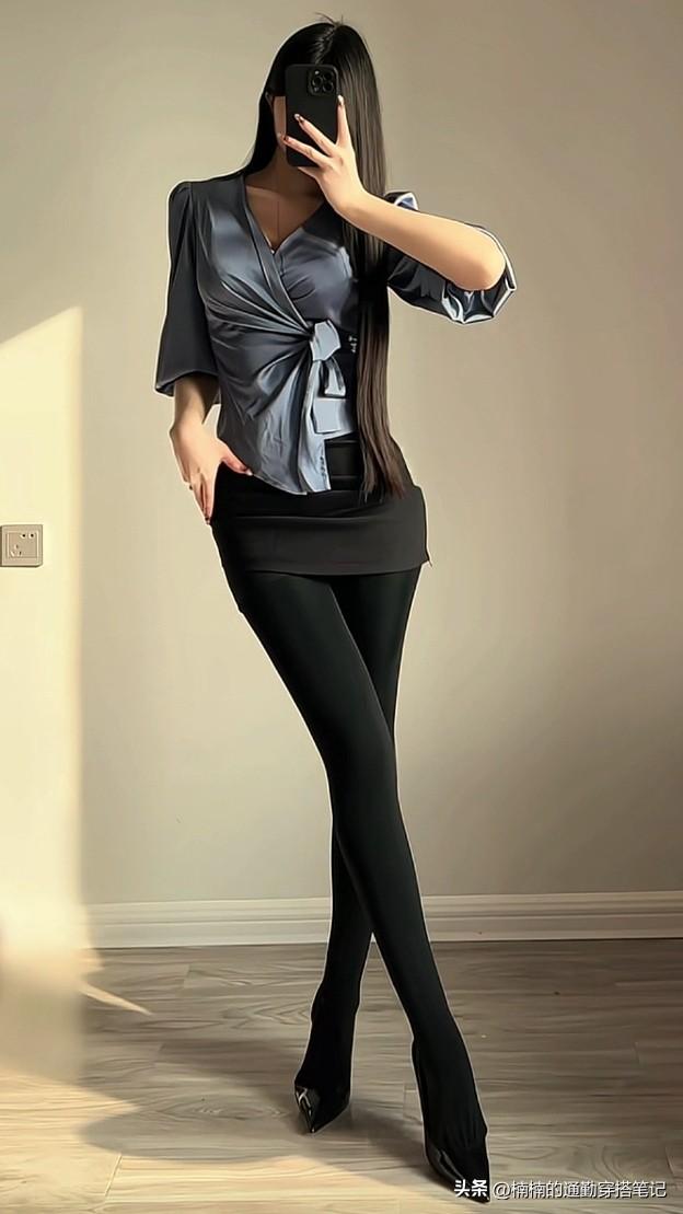 早八通勤时间紧,这套缎面衬衫穿搭直接照抄!灰蓝色缎面衬衫打结扎出腰线,藏肉又显高级。黑色包臀裙搭配连裤袜,简约利落又显瘦,再踩上高跟鞋,气场直接拉满。轻松解锁职场氛围感穿搭,开启优雅通勤风通勤穿搭 职场穿搭