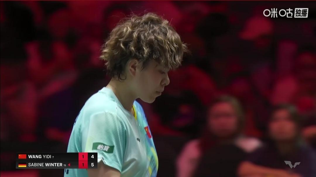 国乒又遇到了特殊打法的麻烦! 女单下半区1/4决赛 王艺迪2:4(11-4;5-11;11-9;5-11;4-11;4-11)不敌德国老将莎宾•温特。 大迪面对防孤特殊打法的温特,应战准备不足,同时急躁! 王艺迪无缘单打四强! 国乒又遇到了特殊打法的麻烦! 半决赛 王曼昱Vs德国温特