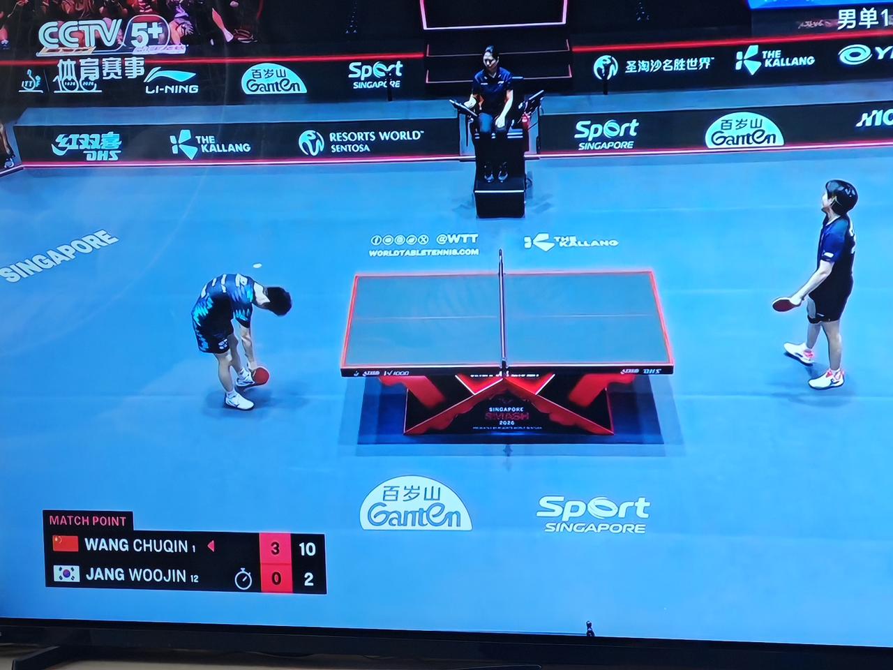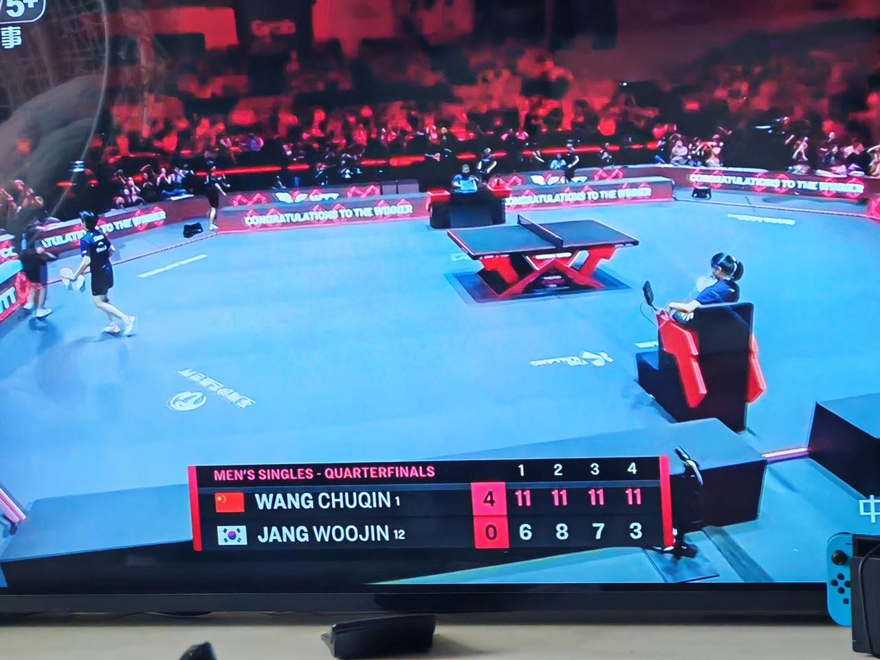 只为了积分而走流程。 毫无意外,王楚钦赢得了比赛,进入了半决赛。 在这场比赛中,裁判两次判王楚钦发球回抛,但挑战结果都是抛球角度小于30度,王楚钦挑战成功。