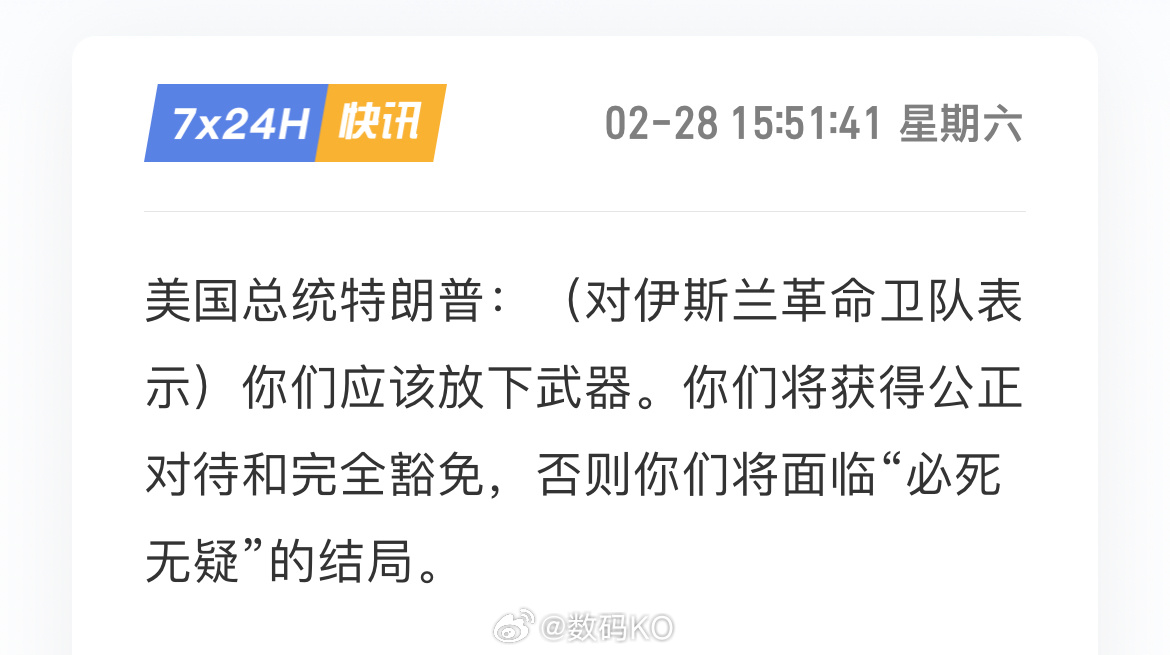 美国对伊朗的空袭正在进行中美国官员:美军预计将对伊朗发起为期十天的军事行动,特朗普:你们应该放下武器。