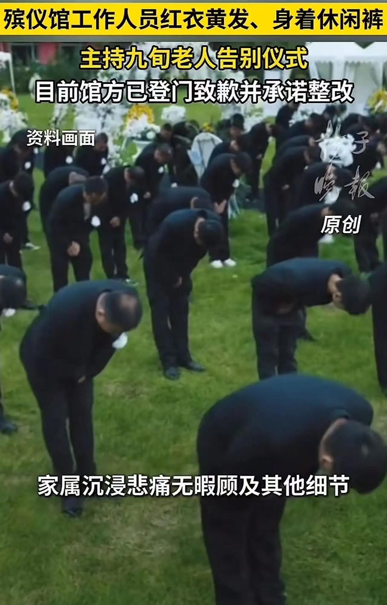 淮安殡仪馆惊现“喜宴主持”:九旬老人最后一程,红衣黄发女子竟在灵堂谈笑风生!全网怒斥:你的尊重,比纸还薄! 那抹刺眼的红,扎痛了所有人的心。当哀乐低回,亲属泪垂,淮安区殡仪馆的告别厅里,却闯入一道格格不入的风景。 一位女主持人,身着鲜艳大红羽绒服,顶着一头亮眼黄发,站在了本应庄严肃穆的仪式台前。 那一刻,时间仿佛错位。这不是婚庆舞台,而是一位九旬老人与世界告别的最后一站。 黑白交织的悲伤,被这突如其来的“喜庆色”粗暴撕裂。现场亲友愣住了,错愕与愤怒在沉默中蔓延。 有人悄悄举起手机,记录下这荒诞一幕。 照片流传到网上,瞬间点燃了千万人的怒火。 那红色,在中国人的生命礼仪中,是婚礼的欢腾,是春节的喧闹,唯独不该出现在这里。 它像一把盐,狠狠撒在了生者鲜血淋漓的伤口上。 网友的评论排山倒海。“这是对逝者最大的不敬!”“难道殡仪馆没有工作服吗?”“别拿‘喜丧’当借口,家属的悲痛不是你们轻浮的理由!” 是的,有人辩解,九十高龄是“喜丧”。可“喜丧”是家属对生命圆满的一种宽慰,绝不是外人可以践踏礼仪底线的通行证。 逝者的尊严,生者的哀思,何时需要如此鲜艳的“点缀”? 更令人心寒的是馆方的后续回应。涉事女子竟是十年老员工,所谓“劳务派遣”成了模糊责任的挡箭牌。 管理疏漏、着装失范,这些轻描淡写的解释,如何能安抚那份被刺伤的悲痛? 殡葬行业,是生命最后的驿站。这里需要的不是时尚与个性,而是刻进骨子里的敬畏与体贴。 工作人员的每一寸衣着,每一句言语,都应是无声的抚慰,而非刺耳的杂音。 那件红衣,暴露的不仅是审美的缺失,更是职业敬畏感的彻底沦丧。它仿佛在说:你的悲伤,与我无关;这场仪式,不过流程。 我们愤怒,是因为我们珍视那份对生命的共同尊重。我们追问,是因为我们害怕,下一个被轻慢的,会是自己或所爱之人。 当最基本的黑白礼仪都被抛诸脑后,我们还能相信什么?道歉和整改是开始,但重塑那份对生命的郑重,路还很长。 每一个行业都有不可逾越的底线。在生死面前,请务必,保持肃穆,心怀敬畏。 因为,你敷衍的,是他人无法重来的最后一程。 (来源:根据扬子晚报等媒体报道及网络热议综合撰写) 殡葬礼仪 职业敬畏