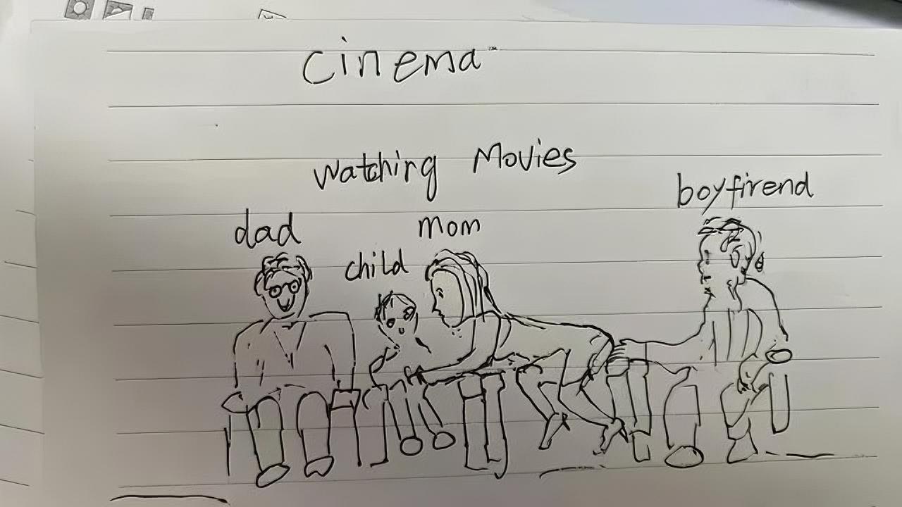 上海一女子,带着丈夫和儿子看电影,还同时约了情人,她的座位挨着情人,两个人互动时
