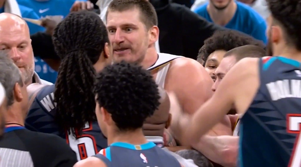 约基奇怒目圆瞪约基奇怒了雷霆掘金冲突