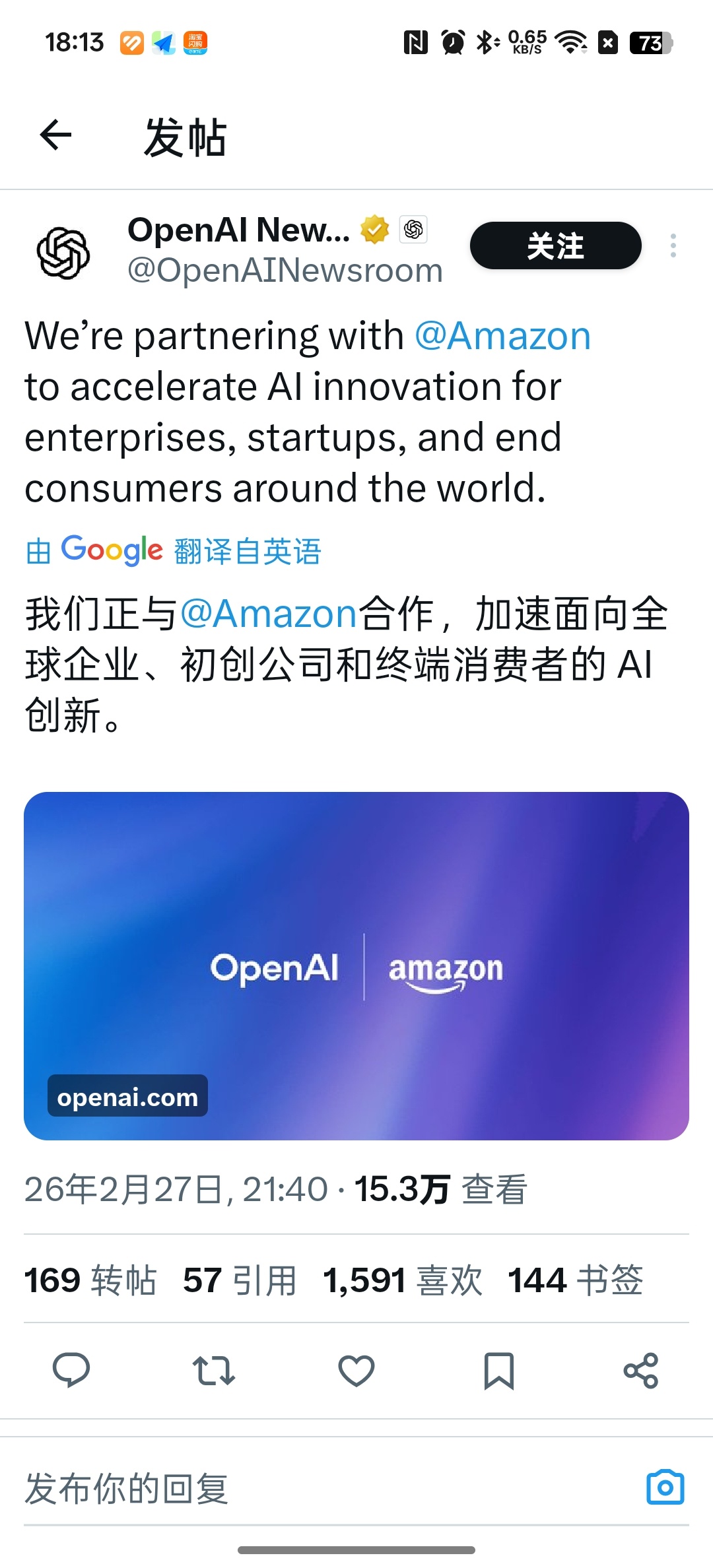 亞馬遜 $AMZN 將投資 500 億美元於 OpenAI