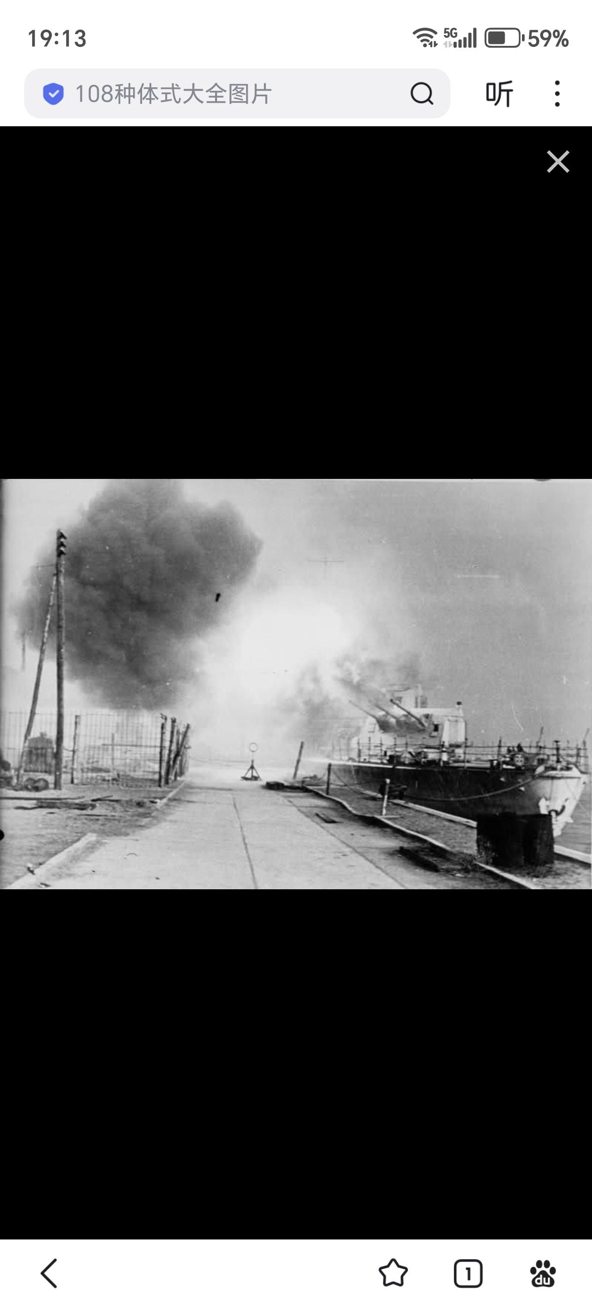 1945年3月,德国海军莱比锡号轻巡洋舰在波兰格丁尼亚,使用150毫米舰炮炮击进