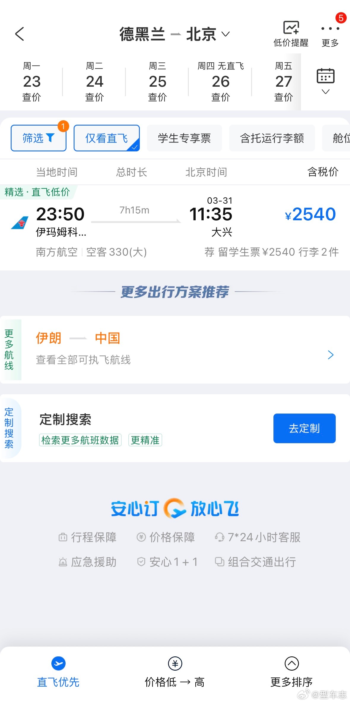 以色列宣布袭击伊朗 查了一下伊朗首都德黑兰回北京的机票,3月底还真有一班南航直飞的,商务舱单程仅需5000多。就是不知道到时候还飞得了吗?以色列宣布袭击伊朗