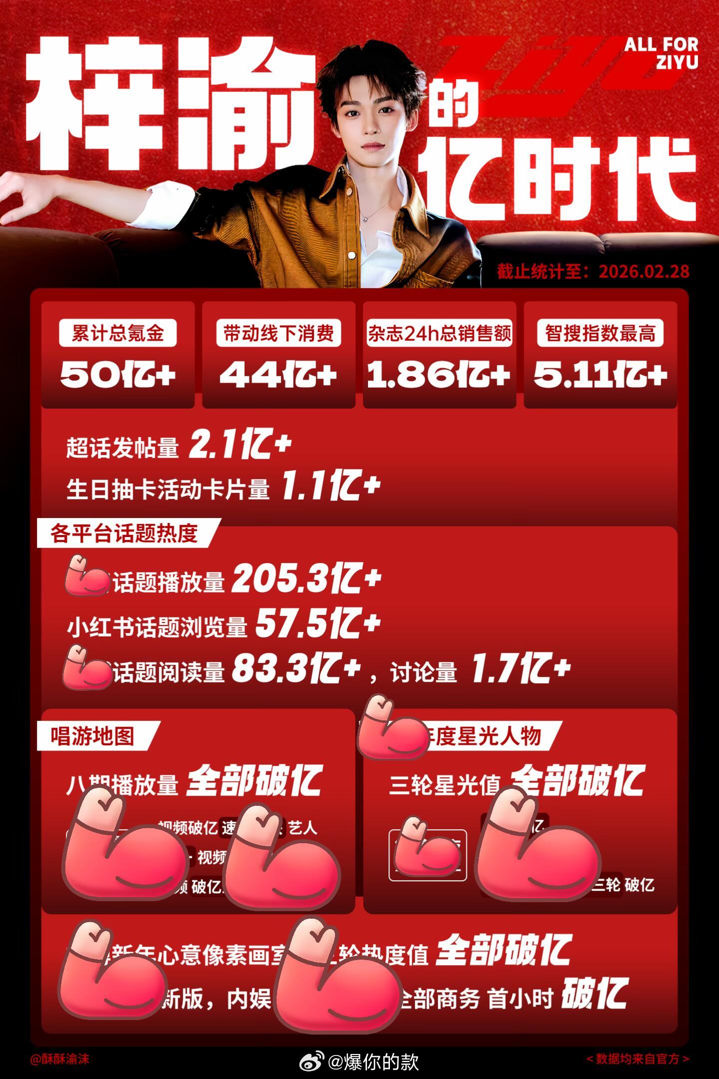 🔥梓渝的亿时代🔥惊人的现象级数据表现及影响力这是属于内娱新贵梓渝的亿时代2025年的数据、时尚、音乐、商务、公益、活动,各个领域都佳绩满满!期待2026年迎来更辉煌的成绩!