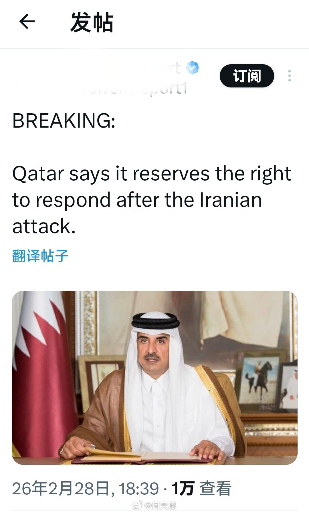 重大消息:卡塔尔科威特均表示,在伊朗发动袭击之后,该国保留作出回应的权利。