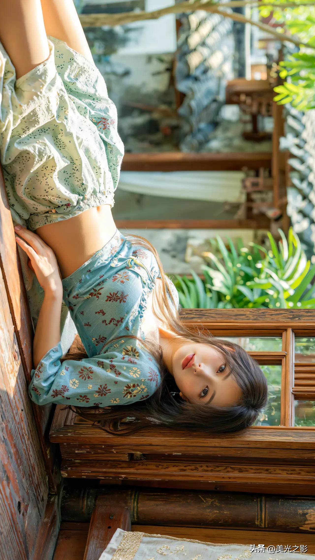 光之影&AI 阳光下的绿意少女,慵懒与优雅并存。 自然清新美少女 阳光白裙少女