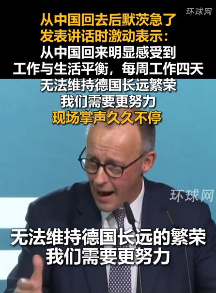 默茨访华结束后在德国演讲,语气激动持续咆哮,台下安静无声! 也许是中国之行的刺激太大了,默茨这次发言的时候情绪相当激动。据现场视频看,他几乎是“咆哮”着抱怨:“先生们,女士们,我们德国已经不再足够有生产力了……当你们从中国回来时,你们会看得更清楚。在工作与生活平衡和四天工作制下,我们国家的长期繁荣无法维持,我们肯定得付出更多一些。” 而台下反应呢?不是掌声雷动,也不是争论不休,而是一片死寂,安静得连掉根针都听得见。 德国的生产力困境早已不是秘密。过去五年,德国经济几乎停滞不前,相较2019年只增长了0.1%,而同期美国增长了12%,欧元区整体也有4%的增幅。 更关键的是生产力增长的持续疲软,2022年后甚至出现负增长,2023和2024年连续两年没有增长,直到2025年第三季度才勉强回升0.35%。 这种低迷不是短期现象,而是长期趋势的延续,自上世纪70年代起,德国生产力增长就跟着整个 OECD 国家的步伐一路下滑,新冠疫情更是让情况雪上加霜。 默茨在访华后感受到的冲击,本质上是这种长期疲软遇上了中国产业活力的直观对比,让原本模糊的差距变得清晰可感。 四天工作制的争议,远不止“多干活还是多休息”那么简单。虽然德国80%的企业都没推行四天工作制,主要集中在中小企业、手工业和 IT 行业,但这个话题早已成了社会矛盾的焦点。 德国工会态度坚决,明确反对放宽工时制度,他们认为现有工时法运转良好,改变只会带来混乱和劳动者权益受损。工会的调查显示,真正阻碍工作时长灵活调整的,不是法律限制,而是企业僵化的流程和管理层的抗拒。 更重要的是,德国面临严重的劳动力短缺,未来十年预计有2000万劳动者退休,却只有1250万新劳动者进入市场,这种缺口不是单纯延长工时就能填补的。 默茨呼吁“付出更多”,却没考虑到德国劳动力市场的现实:很多女性想增加工作时间,却受制于缺乏可靠的育儿设施;年长劳动者继续工作的意愿很低,这些都不是靠口号能解决的。 能源政策的失误让德国工业竞争力雪上加霜。绿党主导的激进能源转型,关停了大量核电站和煤电站,甚至炸毁了新建的清洁煤电厂,直接导致能源供应缺口。 这使得德国工业不得不依赖进口电力,电价几年里涨了一倍多,达到每度电约0.3欧元,是中国工业电价的3.8倍以上。 对于能源密集型企业来说,这样的成本压力几乎是致命的,不少企业自嘲“办企业像是给电网捐钱”。高昂的能源成本让德国工业失去了往日的价格优势,接近40%的工业企业在考虑将生产线迁往海外,巴斯夫在湛江的百亿欧元投资、大众在合肥的生产基地,都是这种产业外迁趋势的体现。 生产力的提升需要稳定的成本环境,当能源成本吞噬了大部分利润,企业自然无力投入研发和技术升级,生产力增长停滞也就成了必然。 德国的外贸困境进一步加剧了这种焦虑。2023和2024年,德国出口额连续两年下降,被称为外贸“失去的一年”,直到2025年才勉强同比增长1%,终结了下滑趋势。作为出口导向型经济体,外贸的疲软直接影响着整体经济活力。 更值得注意的是,中国已再次成为德国最大的贸易伙伴,默茨访华期间,亲眼看到了中国产业链的完整度和生产效率。这种对比让他深刻意识到,德国长期依赖的制造业优势正在被侵蚀。 德国出口商对未来也不乐观,约80%的出口商预计2025年销售额还会下降,特朗普政府可能对欧盟实施的关税威胁,更是让以汽车、机械制造为核心的德国出口行业雪上加霜。 台下的沉默,恰恰是因为所有人都清楚问题所在,却找不到破局的出路。默茨的咆哮戳中了痛点,但他的解决方案过于简单化。 工会担心放宽工时会损害劳动者权益,企业受制于成本压力无力扩张,政客们则被选举周期和党派利益束缚,没人能轻易推动深层次改革。 中国的发展模式和生产效率,给了他强烈的冲击,但德国有自己的历史惯性和社会结构,无法简单复制其他国家的路径。 这场演讲后的死寂,最终成为德国经济转型期的一个缩影:焦虑真实存在,问题清晰可见,但破局的勇气和路径却迟迟难以出现。这种沉默比任何争论都更能反映德国当前的困境,它不是麻木,而是清醒后的无力,是知道问题所在却难以转身的尴尬。