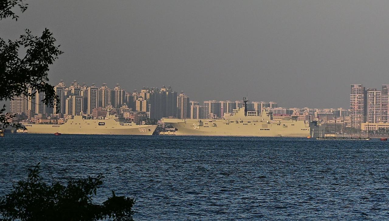 军港的码头上停放着两艘071船坞登陆舰和1艘075两栖攻击舰,这三条船,可以一次投送三个营的海军陆战队上岛,基本上可以形成一个强有力的突击力量。今天小椅子和老美开始围殴伊朗了,这是妥妥的侵略战争,我们应该以维护世界和平为目标,封锁整个西太平洋,控制二战后的几个海上要地,包括冲绳、坡县、瓜岛等,确保战争双方都不能得到有助于战争升级的物资。