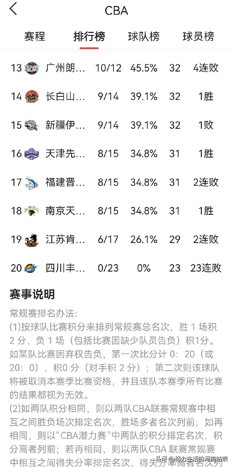 🏀 2025-2026赛季CBA最新积分榜 截至:2026年02月28日(第23轮全部结束,休赛期) 胜1场积2分,负1场积1分;排名按积分→相互战绩→净胜分排序 1. 浙江广厦(方兴渡) 19胜4负 42分 2. 上海久事 19胜4负 42分 3. 广东东阳光 17胜6负 40分 4. 青岛国信水产 14胜9负 37分 5. 深圳马可波罗 14胜9负 37分 6. 山东高速 15胜7负 37分 7. 北京北汽 14胜9负 37分 8. 浙江稠州金租 13胜11负 35分 9. 宁波町渥 12胜11负 35分 10. 山西汾酒 12胜11负 35分 11. 北京控股 11胜12负 34分 12. 辽宁本钢 11胜12负 34分 13. 广州龙狮 11胜12负 34分 14. 吉林九台农商 11胜12负 34分 15. 新疆伊力特 11胜12负 34分 16. 天津先行者 11胜12负 34分 17. 福建浔兴 11胜12负 34分 18. 南京同曦 11胜12负 34分 19. 江苏肯帝亚 6胜17负 29分 20. 四川金荣 0胜23负 23分(垫底) 📌 关键信息 休赛期:2月4日—3月10日,排名固定不再更新 重启时间:3月11日第二阶段开打,赛后排名实时更新 季后赛:常规赛前12名晋级 CBA排行榜 2025-2026赛季CBA最新积分榜