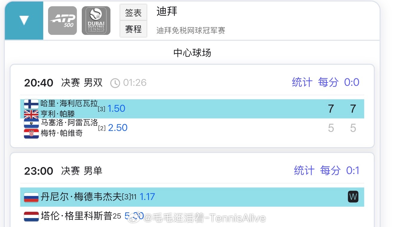 【梅德韦杰夫职业生涯决赛战绩一览】2026迪拜500冠军🏆500硬地🔥202