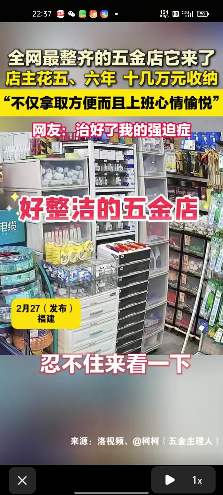 2月27日,福建福州。店主晒出全网最整齐的五金店,顾客看了直说“整理的太专业”。最开始收纳应该是2020年开始的,陆陆续续差不多整理了五六年的时间,收纳箱和货架加上乱七八糟的东西一共花了十几万。不仅拿取方便,而且上班心情愉悦 我以为我自己患了强迫症,结果妈妈解释称把地板弄干净才是患强迫症的表现,但这只是个例,反复查看门也没有关好,手机功能有没有关也是强迫症中的一种