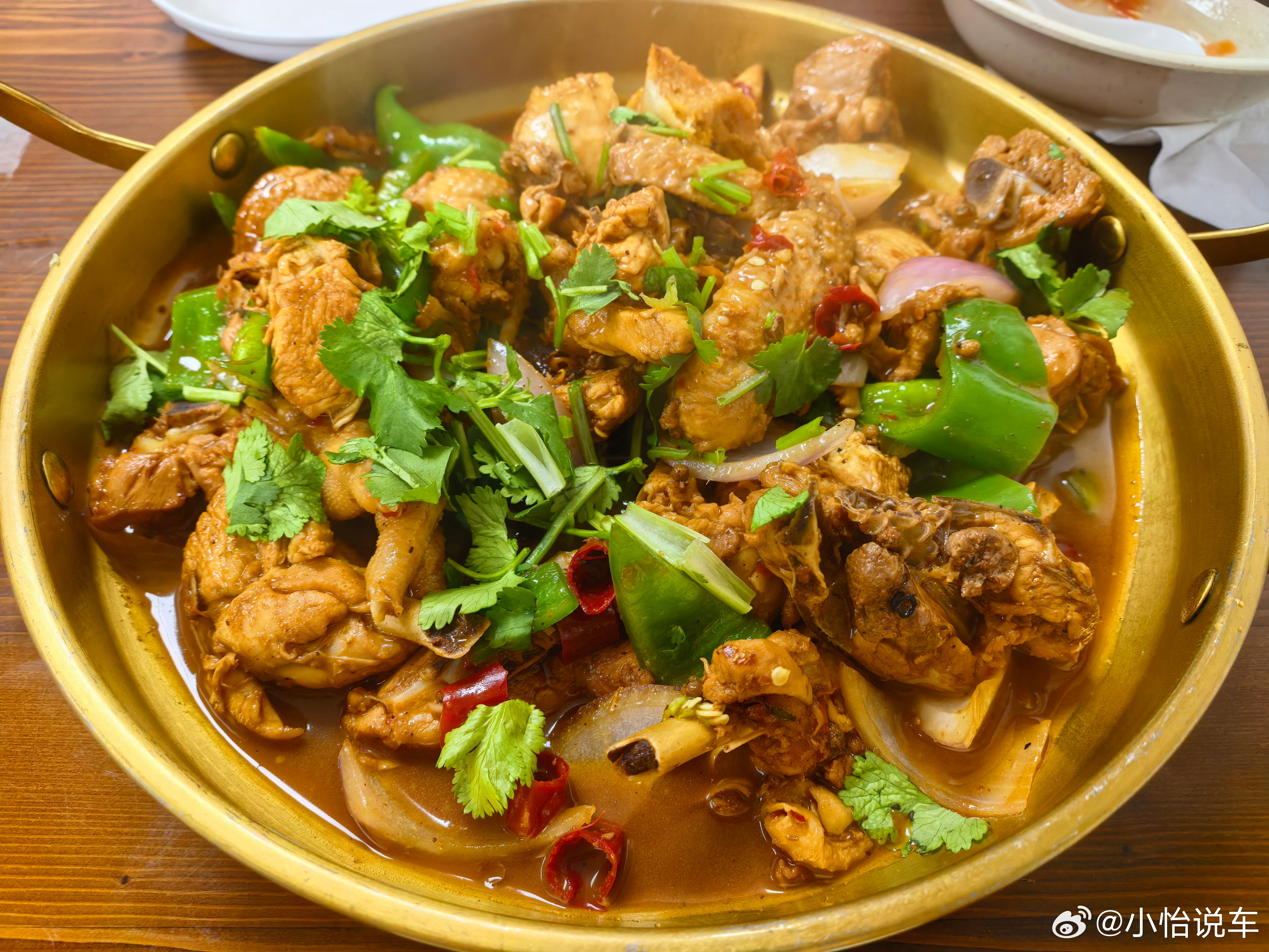 今天羽毛球打了两小时晚上直接来份麻辣大盘鸡鸡肉超新鲜软糯入味手工面裹着汤汁别提多好吃了