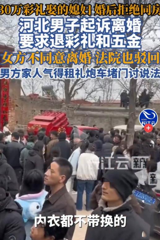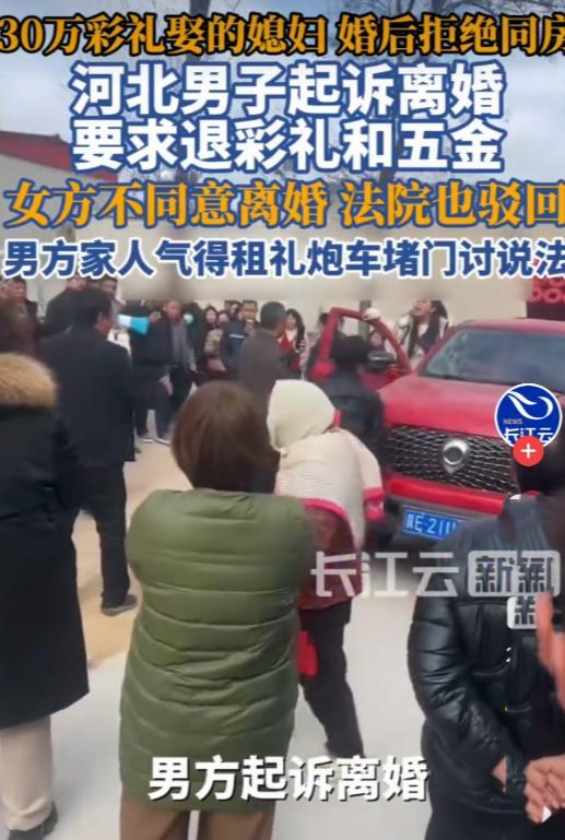 “这脸丢大了!”河北邢台,男子与女子经媒人介绍相亲,女子比他小5岁,是隔壁村的,两人彼此看好,便订了下来,彩礼加租金及物品共30多万。3个月后两人就结婚了。谁知,两人结婚2年,男子称妻子拒与其同房,不履行妻子义务。男子一怒起诉离婚,要求退还30万彩礼,哪料,妻子坚决不离婚,而法院判决让男方家崩溃,接下来他们的做法不可思议! 这事就发生在河北邢台任泽区,都是周边村里的人,低头不见抬头见。 男方是1994年出生的,没什么稳定的营生,家里人为了他的婚事,真是掏空了心思,不仅在城里凑钱买了房、配了车,就为了在相亲市场上能有个底气。 后来经媒人介绍,认识了隔壁村比他小5岁的姑娘,两人见面后感觉都还行,没什么大毛病,就这么敲定了婚事。 订亲的时候,男方家花了不少钱,算下来彩礼、五金首饰、还有手机这些东西,总共加起来有三十多万。 对普通农家来说,这可不是个小数目,全是父母一辈子省吃俭用攒下的血汗钱,还有不少是四处找人借来的。 两人从认识到领证,前后也就三个月,没太多时间互相了解,就匆匆办了婚礼,在2024年2月领了结婚证。 本以为结婚后就能踏踏实实地过日子,可没想到,这桩花了三十多万的婚事,慢慢变成了两家人的麻烦。 结婚两年时间里,男方说妻子一直不愿意和他同房,两人长期分房睡,妻子一回娘家就很少主动回来,完全没尽到做妻子的义务。 男方心里越想越窝火,自己家花光家底娶回来的媳妇,连夫妻间最基本的相处都没有,找媒人说和、托中间人调解,都没什么用。 到了2025年4月,男方实在忍不下去了,就起诉到法院,想和女方离婚,同时要求女方退还当初花的三十多万彩礼。 可谁也没料到,法庭上女方根本不承认拒不同房的事,还说两人一直正常过日子,甚至反过来指控男方有家暴行为,拿出了医院的病历单和抑郁症诊断书。 女方还说,当初的三十多万彩礼,早就用来买陪嫁、日常开销和看病了,一分都没剩下。 法院审理的时候,主要看双方的证据,毕竟谁主张谁举证,男方拿不出足够的证据证明两人感情破裂,再加上女方坚决不同意离婚,一审就驳回了男方的离婚请求。 离婚没成,退还彩礼的事自然也没法谈,男方家拿到判决书后彻底崩溃了,觉得三十万花得太冤枉,一时冲动就做了出格的事。 2025年正月初六,年味还没散,男方家就雇了礼炮车开到女方村口,还架起高音大喇叭,把两人婚后的私密事全喊了出来,甚至还开着直播,把现场情况发到网上,连着闹了好几天,把女方家逼得连大门都不敢出。 女方家没办法,只能把法院的判决书贴在墙上证明自己,还找了村委和派出所求助。 最后在当地政府的介入下,这场闹剧才平息,女方家也松口说可以考虑离婚,好好的一桩婚事,最后闹得两败俱伤,双方都没占到便宜。 大家对此怎么看?欢迎评论区留下您的观点!