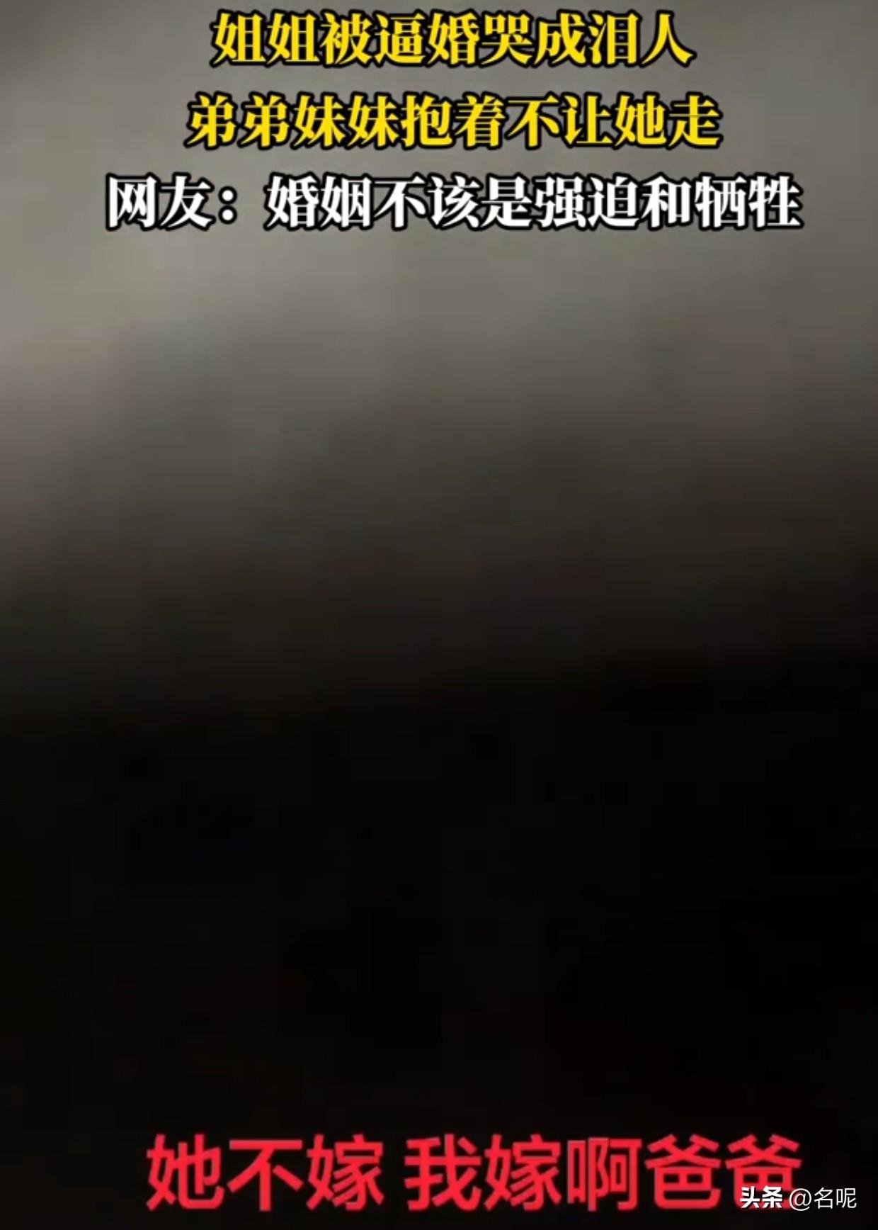 河南魏老师的惨剧才过多久,又有一女孩就被逼婚哭成泪人,弟弟妹妹抱着不让她走。未婚女性在这个世界是人家眼里的资源、交易品。 “爸爸我求你了。她不嫁,我嫁行了吧,她不嫁,我嫁啊爸爸。”女孩的妹妹一直祈求爸爸,不让女孩走,甚至提出了替嫁的想法。 孩子哭得肝肠寸断,大人可能还会觉得吵,会觉得丢脸。女孩在这种人心里就是换钱的物件,钱到手就好了,根本不在乎女孩的想法。 虽然法律明确规定不允许包办婚姻,但是很多地方还有这种陋习。卖女孩换彩礼给男孩娶媳妇,即便去世后还要阴婚再卖一次,榨干女孩最后一点价值。让人觉得可怕,女孩的路总是如此坎坷。 希望被逼婚的女孩们不要走绝路,活着才有希望,人没了,就什么都没了。真心希望社会能多关注这些被包办婚姻裹挟的女孩们,相关部门可以加大对这种陋习的整治力度,深入到那些存在此类现象的地方。 每一个女孩都应该有追求幸福的权利,而不是成为家庭利益交换的牺牲品。希望阳光照亮每一个被阴霾笼罩的角落,让这些被封建陋习束缚的女孩能够挣脱枷锁,不再成为交易品,能够自由地呼吸、快乐地生活。