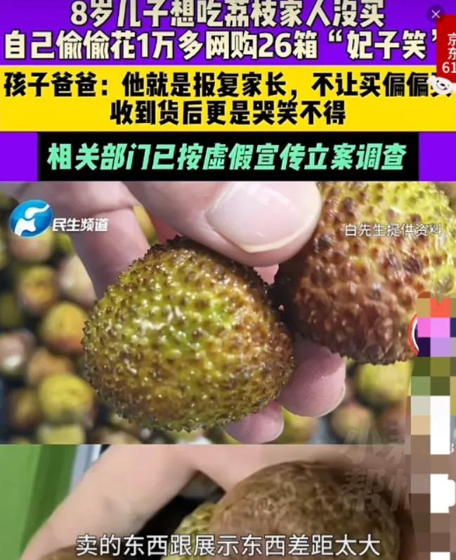 山东聊城,8岁小男孩想吃荔枝,因父母没给买,一口气偷偷网购了26箱荔枝“报复”父母。父母次日发现后,见孩子买的还都是海南的妃子笑荔枝,每箱5斤、399元,一共花了10369元,哭笑不得,连忙联系商家,向商家申请退款但被拒绝。等到货到了之后,事情变得更加不对劲了。 事情的起因就是一颗荔枝,前阵子海南妃子笑刚上市,鲜嫩多汁的样子,让很多人都嘴馋,这其中就包括夫妻俩8岁的儿子,孩子看到别人吃,也馋得眼睛都绿了,天天缠着爸妈,吵着要买妃子笑荔枝,一刻都不闲着。 夫妻俩也犯了难,商量了一下觉得刚上市的妃子笑价格实在太高,死贵死贵的,买一点尝尝都不便宜。而且他们也知道,荔枝性热,小孩子的脾胃本来就弱,吃多了容易上火、坏牙,怎么算都不划算,于是就狠心拒绝了孩子的要求。 孩子被拒后心里特别不高兴,不依不饶地闹腾了好一阵子,夫妻俩被缠得烦了,嘴上没忍住,就多训了孩子几句,让他别再胡闹,在大人看来这就是一件小事,训完就翻篇了,可他们万万没想到,这个8岁的小家伙,心里却悄悄记上了账,还暗下决心要“报复”爸妈。 平时孩子总爱趴在爸妈身边看他们玩手机,大人们也没在意,以为他只是看热闹、看动画片,殊不知,这个小家伙早就悄悄记下来很多东西,爸妈的手机解锁密码,他看几遍就记住了,支付密码也在不经意间记在了心里,就连怎么在购物软件上搜东西、选商品、下单付款,他都看得明明白白,门儿清得很。 一个周末的下午,孩子趁夫妻俩不注意,偷偷溜进卧室,摸走了妈妈的手机,然后缩在角落里,熟练地打开购物软件,手指头在屏幕上笃笃笃敲了五个字,“妃子笑荔枝”,很快页面就跳出了相关的商品,其中一款海南妃子笑,标注着5斤装每箱399元。 孩子一看这不就是自己一直想吃的荔枝吗?他也不管价格贵不贵,也不管买多少合适,只想着要多买一点,好好“报复”一下不给自己买的爸妈,于是直接点了26箱,手指一点支付完成,整个过程干净利落,连一点磕绊都没有,他甚至不知道,自己这轻轻一点,花出去的是爸妈攒了很久的钱。 夫妻俩对此一无所知,直到第二天早上,妈妈习惯性地拿起手机刷消息,屏幕一亮一条发货通知赫然出现在眼前,像刀子一样扎进眼睛里,26箱海南妃子笑荔枝,已付款总金额10369元。 妈妈当时就懵了,以为自己看错了,赶紧揉了揉眼睛,来来回回看了三遍,确认没错后,手抖得差点把手机摔在地上,她连忙把老公喊过来,两口子急急忙忙地翻遍了手机里的购物记录和支付流水,越看越心慌,最后两个人的目光同时落在了客厅里,那个正安安静静看动画片的小身影上。 不用问下单的人肯定是他们8岁的儿子。夫妻俩又气又笑,气的是孩子偷偷花钱,一下子花了一万多,笑的是孩子的幼稚,竟然用这种方式“报复”他们,可生气归生气,眼下最要紧的,是赶紧联系商家,申请退款。 他们拨通了商家的电话,语气特别诚恳,跟商家说明情况,下单的是一个8岁的小孩,还属于无民事行为能力人,这笔交易并不是家长的真实意思,希望商家能通融一下,给办理退款。 可商家那边态度却十分坚决,直接拒绝了他们的退款申请,还摆了三条理由,钱已经付了,货也已经发出去了,而且荔枝是生鲜水果,一旦出了仓库,就没法再退回,毕竟生鲜容易变质,退回之后也无法二次销售,末了商家还加了一句,要是这次开了口子,以后谁都拿“小孩下的单”当挡箭牌,他们的生意就没法做了。 没办法夫妻俩只能等着货物送到,心想哪怕不能全额退款,说不定也能协商解决,或者把荔枝转手卖掉,减少一点损失,可他们万万没想到,等到26箱荔枝送到家门口,签收后打开箱子的那一刻,事情变得更加不对劲了,他们的心情也一下子跌到了谷底。 夫妻俩签收的时候,全程都举着手机录像,生怕后续有纠纷说不清楚,可当他们撕开箱子,看到里面的荔枝时,两个人对视了一眼,脸色瞬间都变了,箱子里装的根本不是他们以为的海南妃子笑荔枝。 夫妻俩一下子就火了,赶紧拿着录像去找商家理论,可商家却换了一套说辞,推脱说是“系统标注出了问题”,坚持说自己发的就是妃子笑,错的是页面标注,不是他们发的货,还拒不承认自己发错了货。 一万多块钱就这样眼睁睁看着变成一堆垃圾,夫妻俩既心疼又无奈,实在没辙了只能拨通了当地市场监督管理所的电话,进行投诉,他们投诉的核心就两条,商家货不对板,把桂花香冒充妃子笑,涉嫌虚假宣传,而且下单的是无民事行为能力的孩子,交易效力本身就存疑。 监管部门介入的速度倒是不慢,很快就组织双方坐下来调解,有意思的是之前还寸步不让的商家,态度几乎一夜之间软了下来,主动开口提出,赔偿4000块钱,希望能私下解决,可一万多的单子赔偿还不到一半,而且商家还是货不对板的一方,夫妻俩没有答应,咬死了要求全额退款。 目前调解还在继续,最终的结局还暂时悬着,可这件事,也给很多家长提了个醒,手机真的不能随便给孩子玩,一定要做好防护。