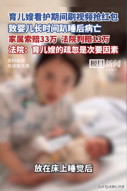 浙江金华,一名2个月的婴儿在家中死亡,后经查证是保姆在照看婴儿时,只顾着玩手机,未注意到婴儿翻身面朝下。等保姆发现时,婴儿已经嘴唇发紫、没了呼吸。然而事发后,保姆坚称婴儿本来就在感冒生病,死亡一事与她没有关系。事后婴儿的家人将保姆告上了法院,可法院的判决令家属十分不满。 2024年6月,蒋先生的妻子生下了一个小娃娃。由于二人是中年得子,所以对这个孩子十分的宝贝。 在孩子刚出生没几天时,他就生病了,而蒋先生夫妇俩没有育儿经验。无奈之下,二人花了大价钱请了持有育婴师证的保姆张某来照顾孩子。 起初,张某的表现十分不错,可谓尽职尽责,让蒋先生夫妇俩觉得这钱花得值,他们对张某充满了信任。 可谁能想到,在8月14日那个晚上,孩子永远的离开了。 根据调查结果,当晚张某在给孩子喂完奶后,就让孩子趴在了床上,而孩子当时有点感冒,所以趴在床上时间久了也难受。 张某当时还一直盯着孩子,在趴得差不多时,就把孩子翻了过来。可仅仅过了一两分钟,孩子的头就歪向了一边。张某见状用手把孩子拨正,然后转过身去玩起了手机。 就在张某沉浸式地用手机刷视频、聊微信、抢红包时,孩子竟然学会了翻身,但他虽然翻了身,但头部还无法长时间保持立起来,所以抬了一会儿头,接下来整个面部就埋在了床上。 张某对此并不知情,她还在继续玩着手机,而孩子的挣扎却越来越弱。 在玩了差不多半小时的手机后,当张某去查看孩子的情况时,发现他已经把整个脸闷在了床单上一动不动。 张某立即放下手机将孩子给翻了过来,但此时孩子已经嘴唇青紫,没了呼吸。 张某吓得立即叫了救护车并通知了蒋先生夫妇,然而医生尽了全力抢救,还是没能把孩子救回来。当蒋先生夫妇赶到医院时,孩子已经被宣告死亡。 事后,张某自掏腰包3万元,打算做个人道主义补偿。 但是面对失去孩子的蒋先生夫妇来说,他们认为张某是有责任的,是因为张某玩手机没照顾好孩子,才导致孩子死亡的,于是他们将张某告上了法院,索赔各项损失33万余元。 可是面对蒋先生夫妇的起诉,张某则坚称没有证据证明孩子是被她弄死的,而且孩子自己还生病了,谁知道是不是病情加重导致的。 对于张某的辩解,不少网友坐不住了,这哪里是疏忽,这就是谋杀,应该判刑。 还有网友表示,这种人怎么能进入保姆行业的?这个考证是没有门槛,什么人都能做的吗? 但也有网友表示,做父母的也不对,请什么保姆,自己没时间带就不要生了。 那张某的行为到底构不构成犯罪呢? 首先,张某肯定不是故意要让孩子死亡,从她在发现孩子出现异常后立即叫救护车,说明其履行了积极救助的义务。 因此,可以排除张某故意犯罪的可能。 其次,张某未注意看护孩子,可能构成过失。 过失致人死亡罪属于过失犯罪,是指行为人应当预见自己的行为可能造成他人死亡的结果,由于疏忽大意而没有预见,以致造成他人死亡,或者行为人已经预见到其行为可能会造成他人死亡的结果,但由于轻信能够避免以致造成他人死亡。 本事件中,张某虽然一直在孩子身边看护,但她背对着孩子玩手机,导致了孩子翻身后没发现,这是疏忽大意的过失。 不过,要认定张某构成过失致人死亡罪,就必须证明孩子的死因与张某的过失存在主要因果关系才行。 因此,张某的行为只是可能构成过失致人死亡罪。 那法院会怎么判? 蒋先生夫妇对张某提起的是民事侵权之诉,按照《民法典》第1165条规定,行为人因过错侵害他人民事权益造成损害的,应当承担侵权责任。 本案中,张某未看护好孩子肯定存在过错,只要能证明这个过错与孩子的死亡存在因果关系,那张某就应当赔偿损失。 法院经过调查发现,张某的不当看护行为可能会加剧孩子呼吸功能障碍,从而导致孩子死亡。 因此,张某的果实与孩子的死亡之间,存在民事侵权上的因果关系。其中,孩子的死亡主要原因是自身疾病所致,张某的疏忽大意是次要责任。 最终,法院判决张某承担10%的责任,在扣除张某已经支付的人道主义补偿3万元的情况下,还需赔偿蒋先生夫妇各项损失13万余元。 对于这个结果,您有什么看法?欢迎大家留言交流。