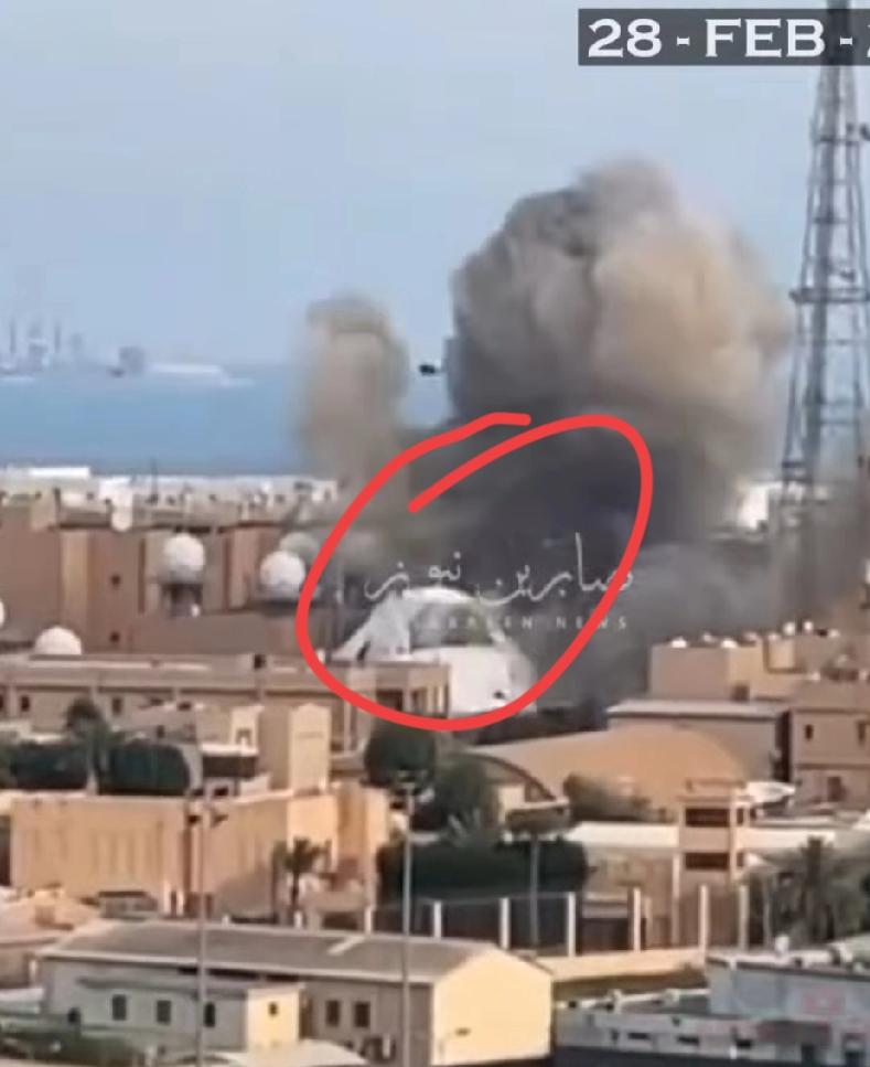 最新消息,美国基地雷达被炸! 独家画面显示,一架伊朗“沙赫德”-136无人机对位于巴林的美国海军第五舰队雷达站实施了精确打击。在这一紧张的军事动态中,你可以看到雷达寻的导引头命中目标后,这处地区海军指挥中枢冒出浓烟的景象。