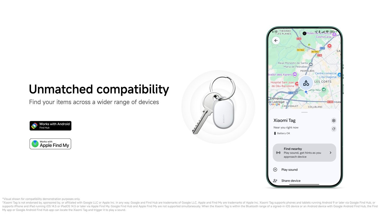 这款追踪器同时兼容谷歌 Find My Device 与苹果 Find My 服务,可在 iOS 和 Android 设备上定位追踪物品。