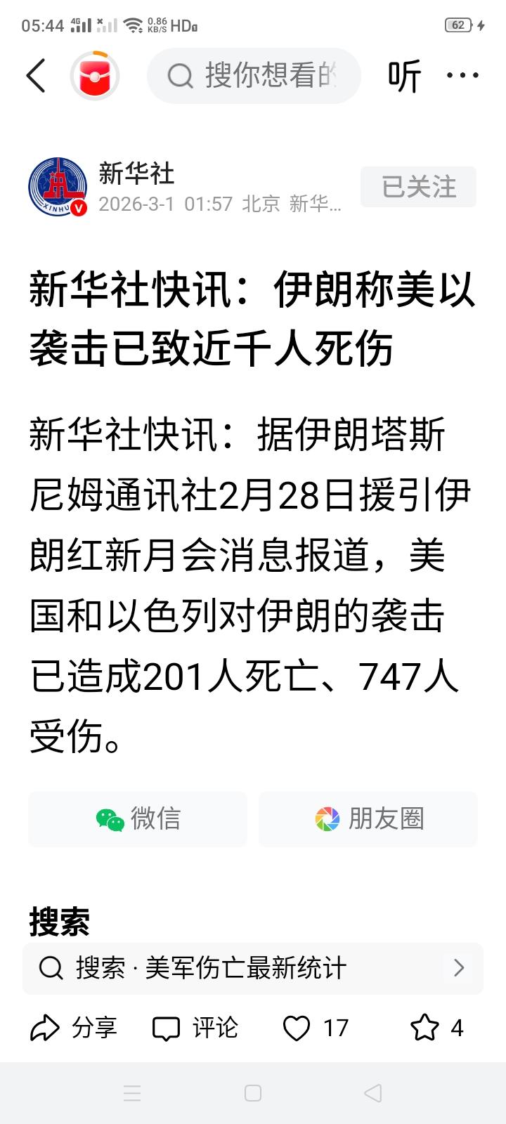 美以轰炸伊朗,伊朗红新月会说已造成伊朗201人死之,747人受伤,而伊朗攻击美国在中东的多处军事基地,美军毫发无伤,所以说美伊谁报道的伤亡情况更真实呢? 战争最受伤害的其实还是老百姓,所以我们最该庆幸的是我们出生在强大的中国,更有全心全意为我们着想的政府,而资本主义国家首先考虑的永远先是资本家的利益!