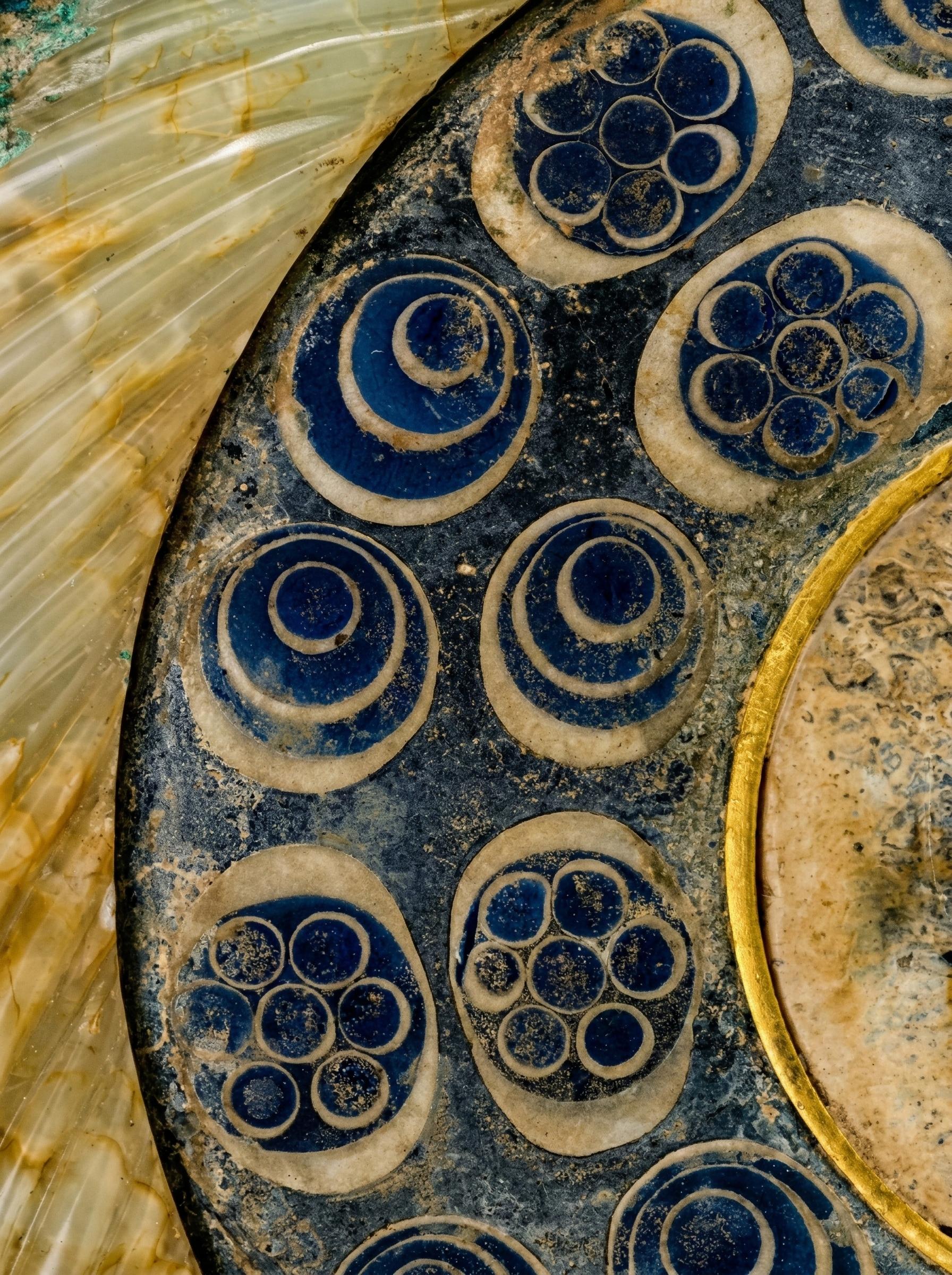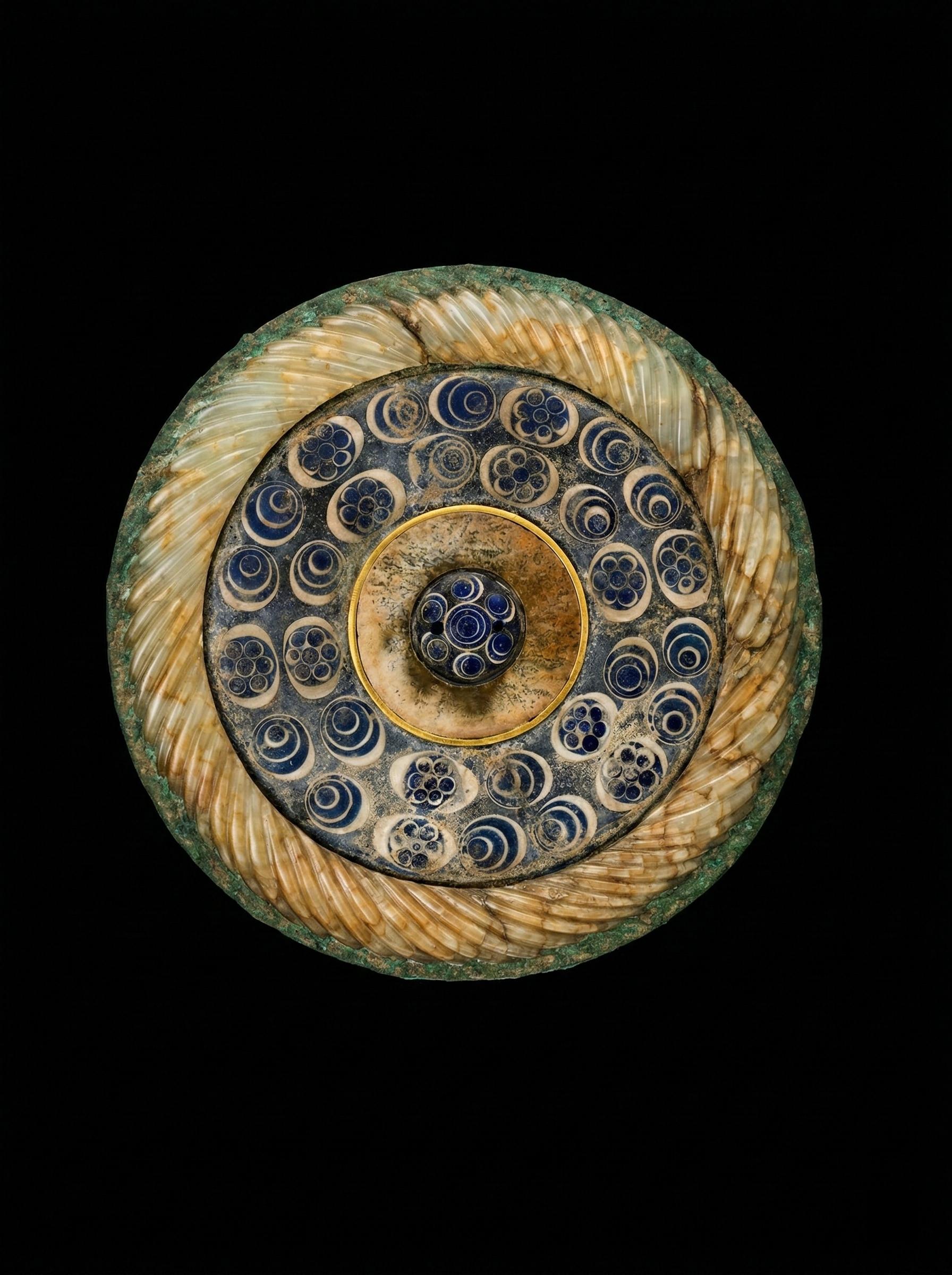 一圈素面玉环将其界定,外接大片深蓝琉璃地