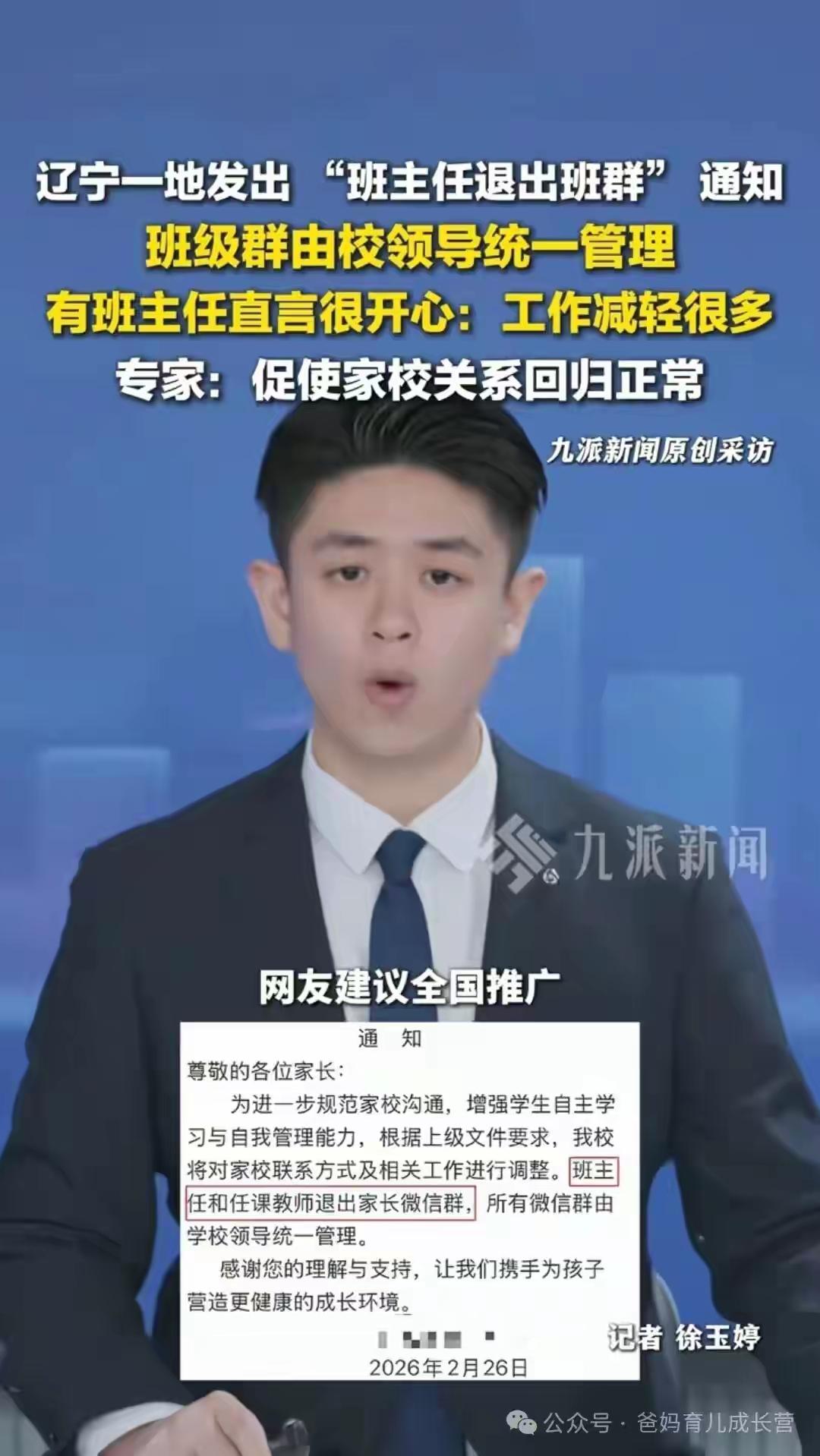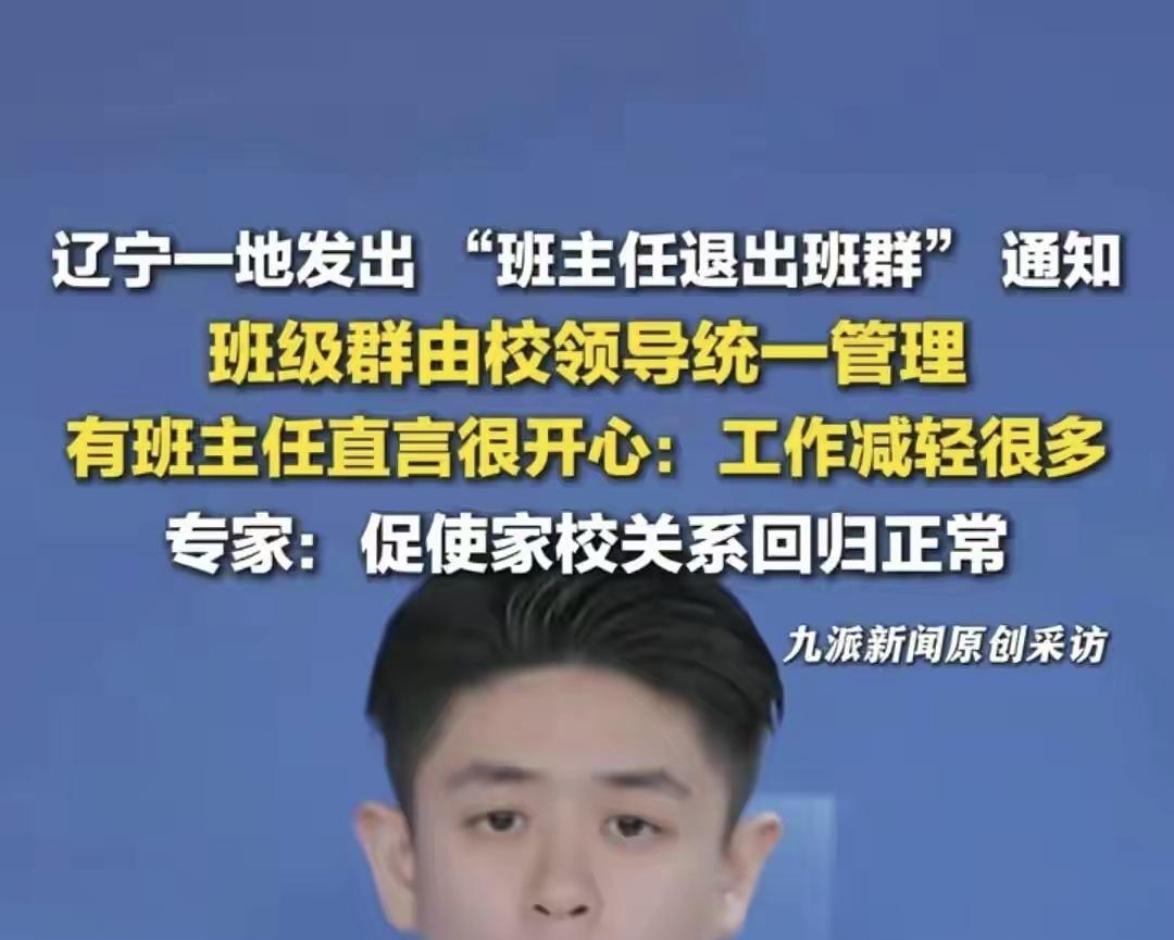 辽宁某学校发出“班主任退出班级群”通知,班级群由校领导统一管理。班主任高兴工作减轻很多负担,专家点赞说家教关系回归正常,网友欢呼全国推广。 这件事情的最终效果,还需要时间的检验。当然,首先还是要为当地教育局领导和学校领导点个赞,每天班主任在班级群当中要消耗大量时间,一些家长事无巨细不停咨询班主任,下班之后周末时间不停咨询孩子的事情,有些时候班主任回复晚一点,家长可能还会有意见发牢骚。班级群如果没有做到风清气正,平静安宁,确实会给班主任增添大量的劳动负荷和烦恼。 现在班级群归校领导管,这在全国也是创新的。但这里面有也有网友疑惑,每个校领导如果分管两三个班级群,他会不会把很多事情通过另外方式转发给班主任处理,从而并没有减轻负担?不过我觉得,只要你校领导能拦截一部分无用的要求和投诉,也在一定程度解放了班主任。 我当了20多年班主任,以前信息技术不发达的时候,也就是没有这么多的工作群,网络平台的时候,班主任老师反而非常轻松。现在这一个又一个的工作群,班级群,年级群,学科组群,让很多一线老师苦不堪言。因为会有源源不断的通知要求传过来。 所以我一直认为拥抱信息技术,不要迷信信息化管理,过度信息化其实是大大增加了工作的负担,增加了很多重复无效的劳动。教育