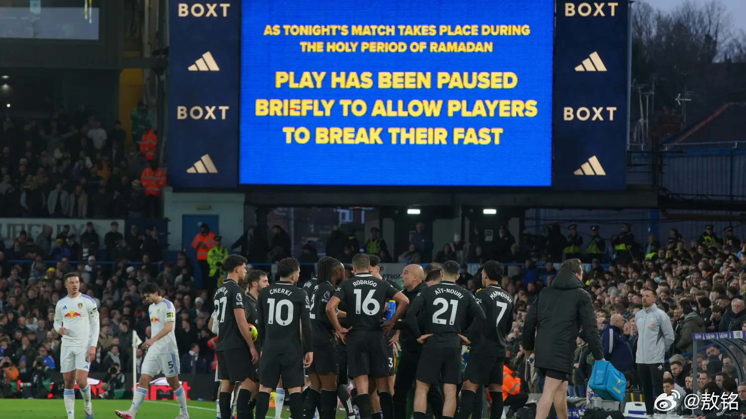 利兹联0比1曼城 又到了穆斯林斋月,每日自黎明前至日落期间,虔诚举意,不饮不食。利兹所在的西约克郡日落时间是17点41分,比赛是17点30分开始,所以比赛进行到11分钟,裁判暂停比赛,让穆斯林球员到场边吃喝。曼城有4名穆斯林球员,胡桑诺夫在替补席,诺里、切尔基、马尔穆什首发。他们都到场边快速补充了能量棒。利兹联部分球员发出嘘声。曼城主帅瓜迪奥拉赛后表示,大家要尊重不同的宗教信仰。曼城