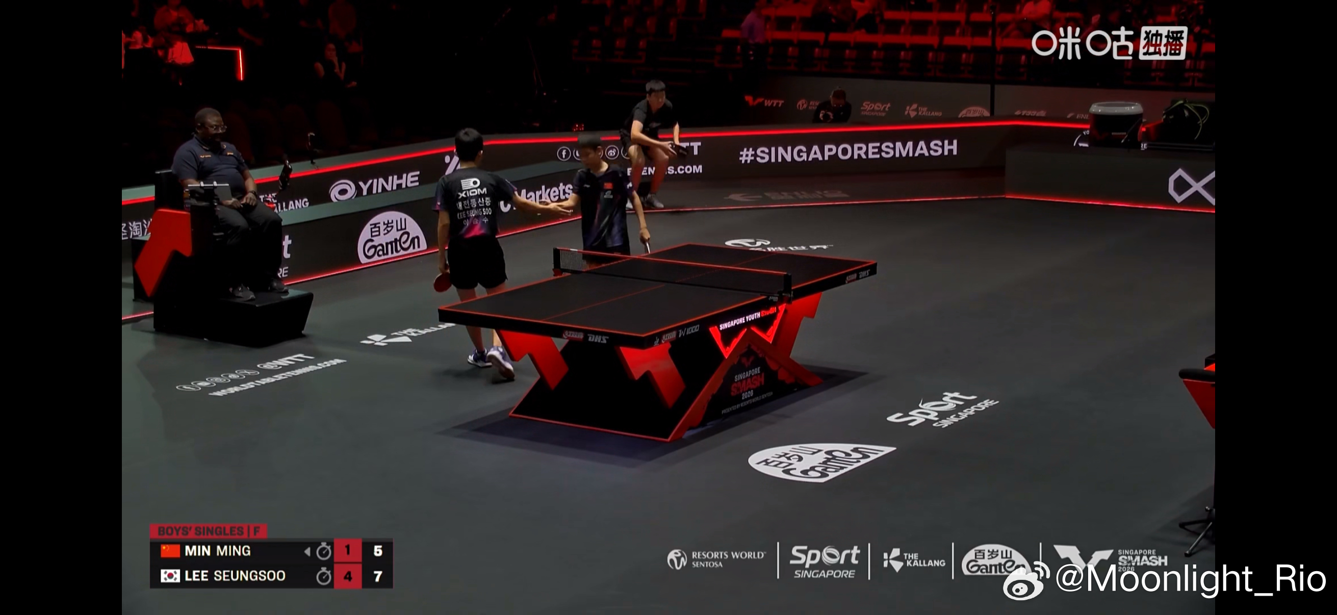 🇰🇷李承洙4比1闵鸣🇨🇳(7-4,4-7,7-2,7-5,7-5)