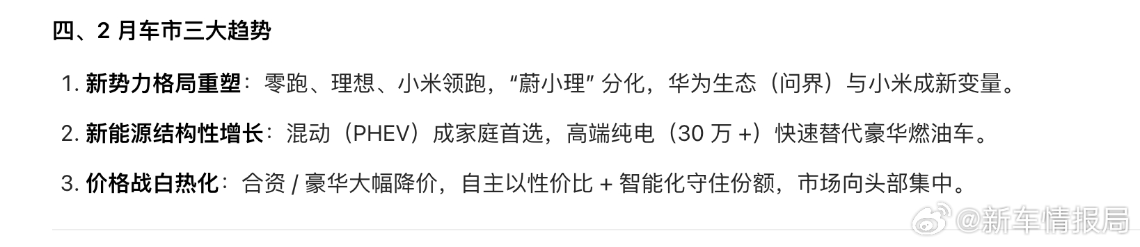 新车情报局进入2026 年,车企销量都有些许下滑,而到了 2 月,车市受春节假期影响,有效工作日仅 16 天,整体销量下滑会更明显。