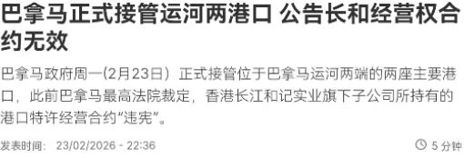 巴拿马对我们的反制与警告不予理会!巴拿马正式接管运河两港口!2月24日,根据法新社报道,法媒称,巴拿马政府周一(2月23日)正式接管位于巴拿马运河两端的两座主要港口。而此前巴拿马最高法院裁定,香港长江和记实业旗下子公司所持有的港口特许经营合约“违宪”。 这事得从1997年说起,当时巴拿马运河两端的港口设备老旧,效率低下。长江和记通过国际竞标拿到了25年的特许经营权,投了重金进行现代化改造。2021年,合同依法自动续约25年,有效期一直到2047年,巴拿马政府当时全程批准,没有任何异议。 但到了2026年1月底,巴拿马最高法院突然裁定,当年批准这份合约的法律“违宪”,连带着2021年的续约也一并失效。裁决在官方公报上一公布,政府立刻行动,总统穆利诺签署行政法令,以“紧急社会利益”为由下令临时接管。政府代表进入港口后,直接告知员工特许经营权终止,必须配合政府安排,否则可能面临刑事检控。这种操作手法,等于单方面撕毁了一份还有二十多年才到期的合同。 巴拿马政府这么做的理由,表面上是说为了确保运河枢纽的持续安全运作。但明眼人都知道,根本原因在于这两个港口的战略价值和经济收益实在太大了。巴拿马运河承担着全球约6%的海运贸易量,是连接太平洋和大西洋的咽喉要道。而巴尔博亚港和克里斯托瓦尔港正好卡在运河的两端,是所有船只进出运河的必经门户。控制了这两个港口,就等于捏住了全球航运的一条大动脉。 从经济账来算,这笔买卖更是一本万利。长江和记经营这些年,把港口的年吞吐量从50万标准箱做到500万。两个港口加起来,占了巴拿马全国集装箱吞吐量的三分之一以上。这样一只下金蛋的鸡,巴拿马政府自然想收回来自己养。 更深一层看,这事背后还有国际博弈的影子。巴拿马运河历史上就是大国必争之地,1903年到1999年期间完全由美国控制。虽然运河主权在1999年归还给了巴拿马,但美国通过其跨国公司,仍然在运河区保持着强大的影响力。 长江和记作为一家香港企业,在这片被视为美国“后院”的区域掌握关键基础设施,本身就比较敏感。有外媒报道指出,这场争议因美国政府介入而加剧,特朗普曾公开宣称要全面控制巴拿马运河,以排除中国在该航线的影响力。 巴拿马政府选择在这个时间点动手,也是经过算计的。他们并没有让港口运营彻底瘫痪,而是迅速安排了过渡方案。接管后,港口将进入长达18个月的过渡期,巴尔博亚港暂时交给丹麦马士基集团旗下的APM Terminals运营,克里斯托瓦尔港则由瑞士地中海航运公司MSC的当地子公司接手。 这样一来,港口的日常运作不会中断,全球贸易不受影响,巴拿马政府也能避免国际舆论的强烈反弹。他们甚至承诺,原有约1200名员工不会因为运营权更替而被裁员。这种“平稳过渡”的表象,很大程度上是为了减少接管行动带来的外部压力。 对于长江和记来说,这次损失是实实在在的。公司已经明确表示,巴拿马政府的行动不合法,将保留一切法律追究的权利,并启动国际仲裁程序。国际仲裁是跨国投资纠纷常见的解决途径,但过程漫长,结果也存在不确定性。即便最终仲裁庭裁定巴拿马政府违约需要赔偿,赔偿金额能否覆盖企业数十年的投资和未来收益,也是未知数。 中国政府的态度也很明确,外交部发言人表示,中方将坚决维护企业的正当合法权益。香港特区政府商务及经济发展局局长也向巴拿马驻港总领事提出了严正抗议,指出这种行动破坏合约精神,损害香港企业在海外的权益。这些表态不仅是外交上的支持,也向国际社会传递了一个信号:中国企业海外投资的合法合约应当得到尊重和保护。 从长远来看,巴拿马政府这次强行接管,可能会产生一些意想不到的后果。最直接的就是打击外国投资者的信心。一家企业按照当地法律,通过正规竞标获得经营权,投入巨资建设运营,将一片荒芜之地打造成区域枢纽,最后却因为一纸“违宪”裁决而被扫地出门。这种案例一旦发生,其他国际资本在考虑投资巴拿马,乃至整个拉丁美洲的基础设施项目时,必然会更加谨慎。 巴拿马政府虽然短期内收回了港口的控制权和收益权,但也背上了“违约”的名声。在全球经济一体化的今天,国家信誉本身就是一种重要的无形资产。为了眼前的经济利益而损害长期建立起来的商业信誉,这笔账到底划不划算,恐怕还需要时间检验。 目前,两个港口已经在巴拿马海事局的控制下继续运转,马士基和MSC作为临时“管家”维持着日常作业。巴拿马政府表示,将在过渡期结束后,通过新的国际招标程序来确定港口的长期运营商。 这场围绕巴拿马运河港口的争夺,表面上是一起商业合同纠纷,实际上折射出全球贸易关键节点上,国家利益、商业资本和国际地缘政治之间的复杂博弈。港口控制权的易手,不仅关系到一家企业的得失,更可能影响未来全球航运格局的微妙变化。