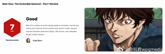 《刃牙》新动画IGN 7分IGN为《刃牙道:无敌武士》打出7分的评价。影评人认为新动画绝不无聊,在格斗狂想与科幻戏剧之间找到了一个有趣的平衡,让观众无需在精彩打斗、滑稽幽默和贴近现实、粗线条主题之间做选择。IGN评分:7分总评:随着被复活的历史人物宫本武藏的加入,《刃牙》这个崇尚“力量即正义”的故事迎来了新生。虽然新粉丝可能会有些困惑,但对于那些对这个标志性系列感到好奇的观众来说,《刃牙道:无敌武士》仍然提供了一个相对友好的入门点。