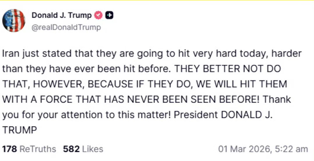 特朗普:“伊朗刚刚宣称,他们今天将发动极为猛烈的打击,而且是前所未有的力度。但他们最好别这么做,否则,我们将以前所未见的武力予以回击。” 伊朗称将开启最猛烈进攻伊朗导弹击中以军总参谋部