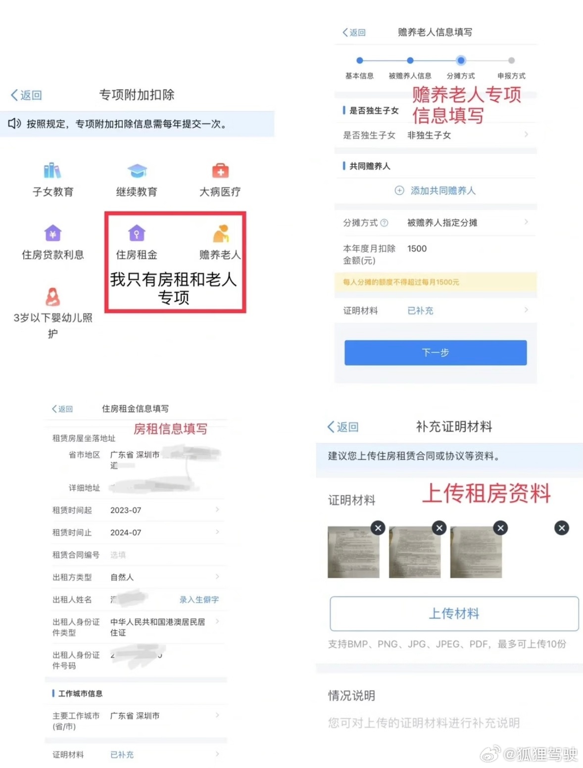 一,退税前操作。如图3。需要添加银行卡。需要添加可以抵税的信息,即专项附加扣除。以我为例,有租房和60岁以上老人可以添加。需要拍照租房合同,老人身份证,作为证明材料。