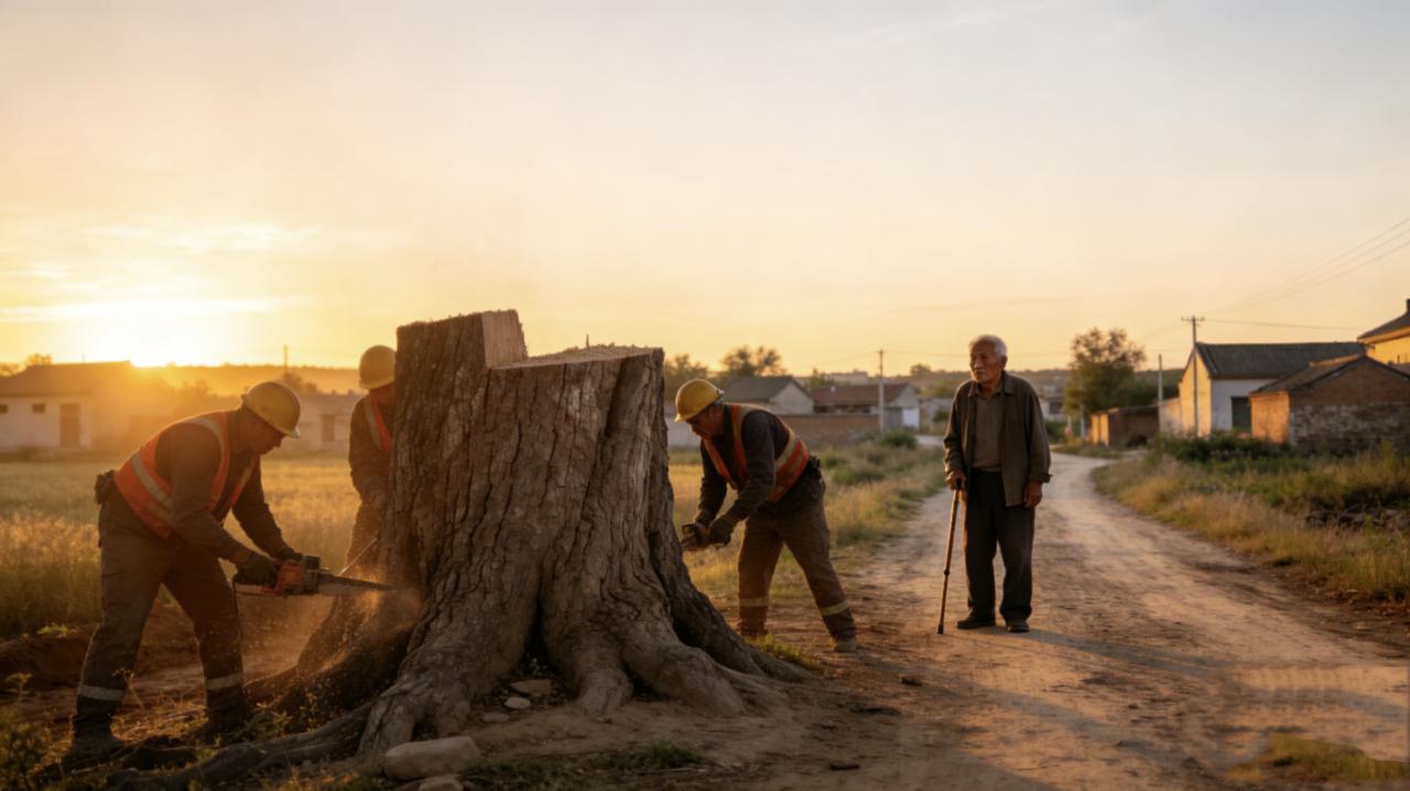 村里最老的树被砍了,说要修路。 树倒那天,八十岁的老刘拄着拐杖站在旁边,看了整整一下午。 施工队的人不好意思,说:“老刘,这树挡路,没办法。” 老刘没吭声,弯腰捡了一截树枝,慢慢走回家。 第二天,他家门口多了一个木墩子。 每天傍晚,他就坐在那木墩上,望着原来有树的方向。 有人问:“老刘,您坐这儿干啥?” 他说:“等它发芽。”
