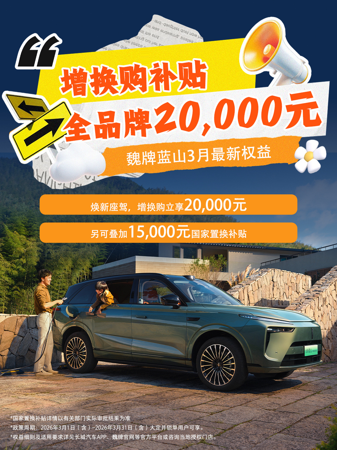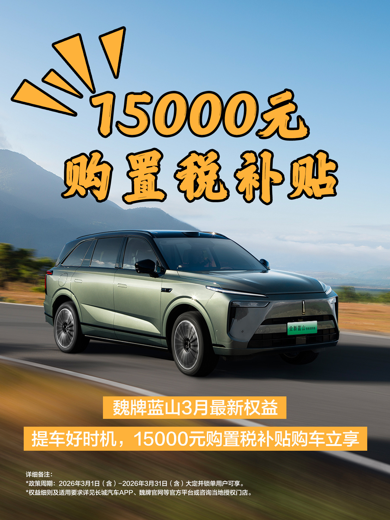 春天全家出游,选魏牌蓝山准没错!大六座宽敞舒适,安全可靠、插混长续航,春季购车补贴优惠多,家用自驾超安心。