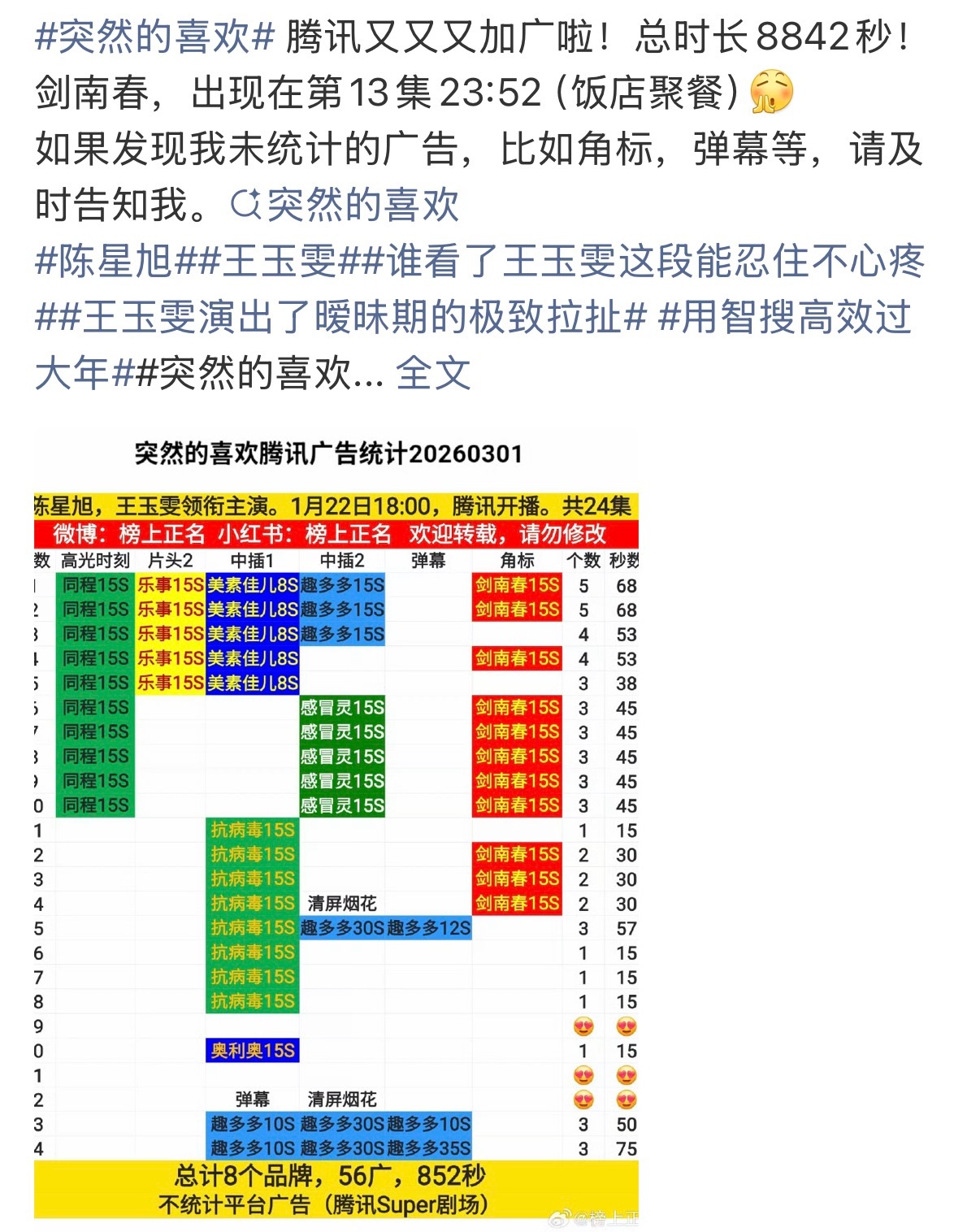 陈星旭突然的喜欢 腾讯又又又加广了!总时长8842秒,长期加广中,好消息不断