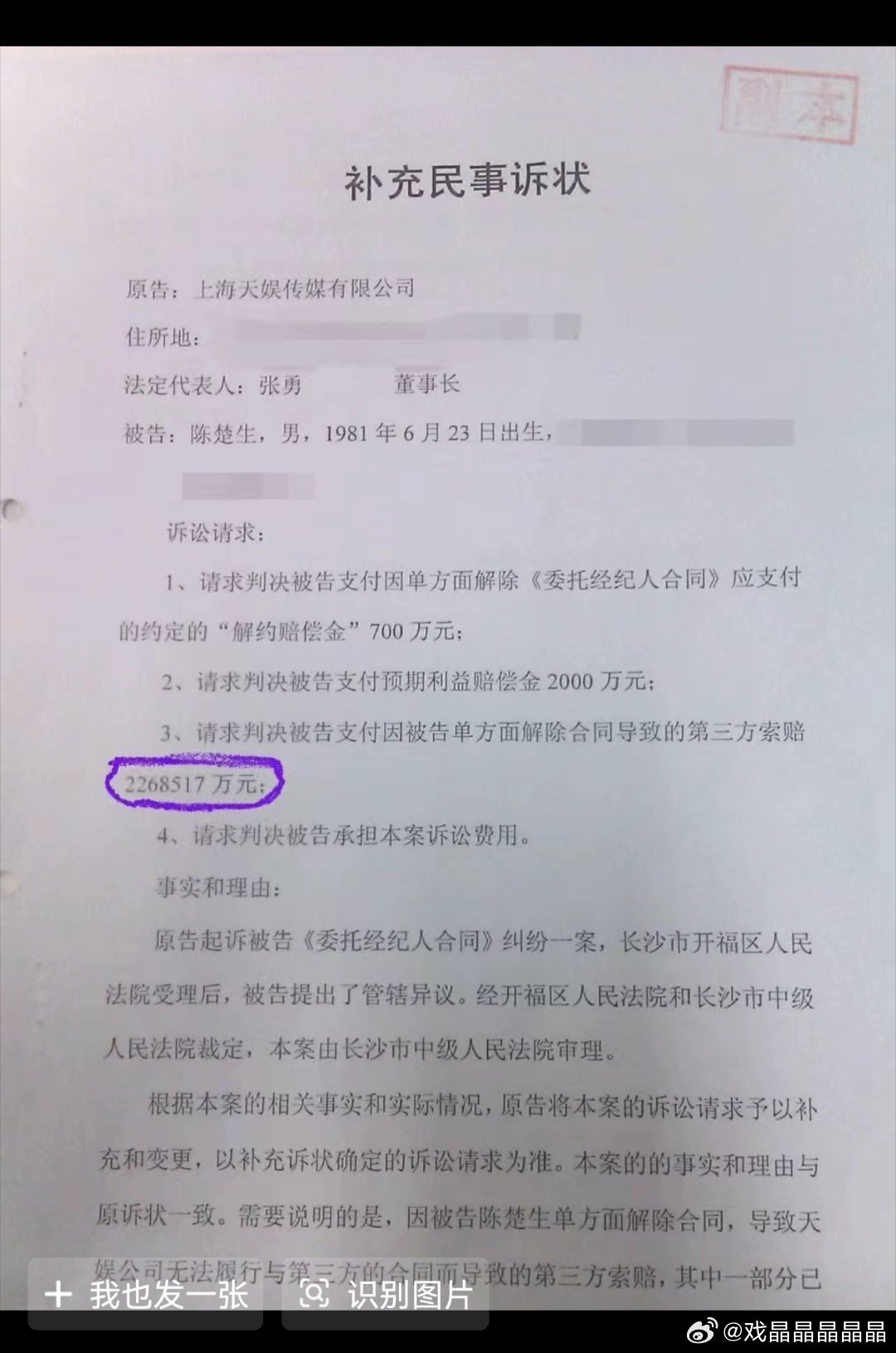 当初天娱真的想让陈楚生赔227亿。。。这是内娱天价解约费。好惊人的227亿,把当时的长沙中院都吓到了。