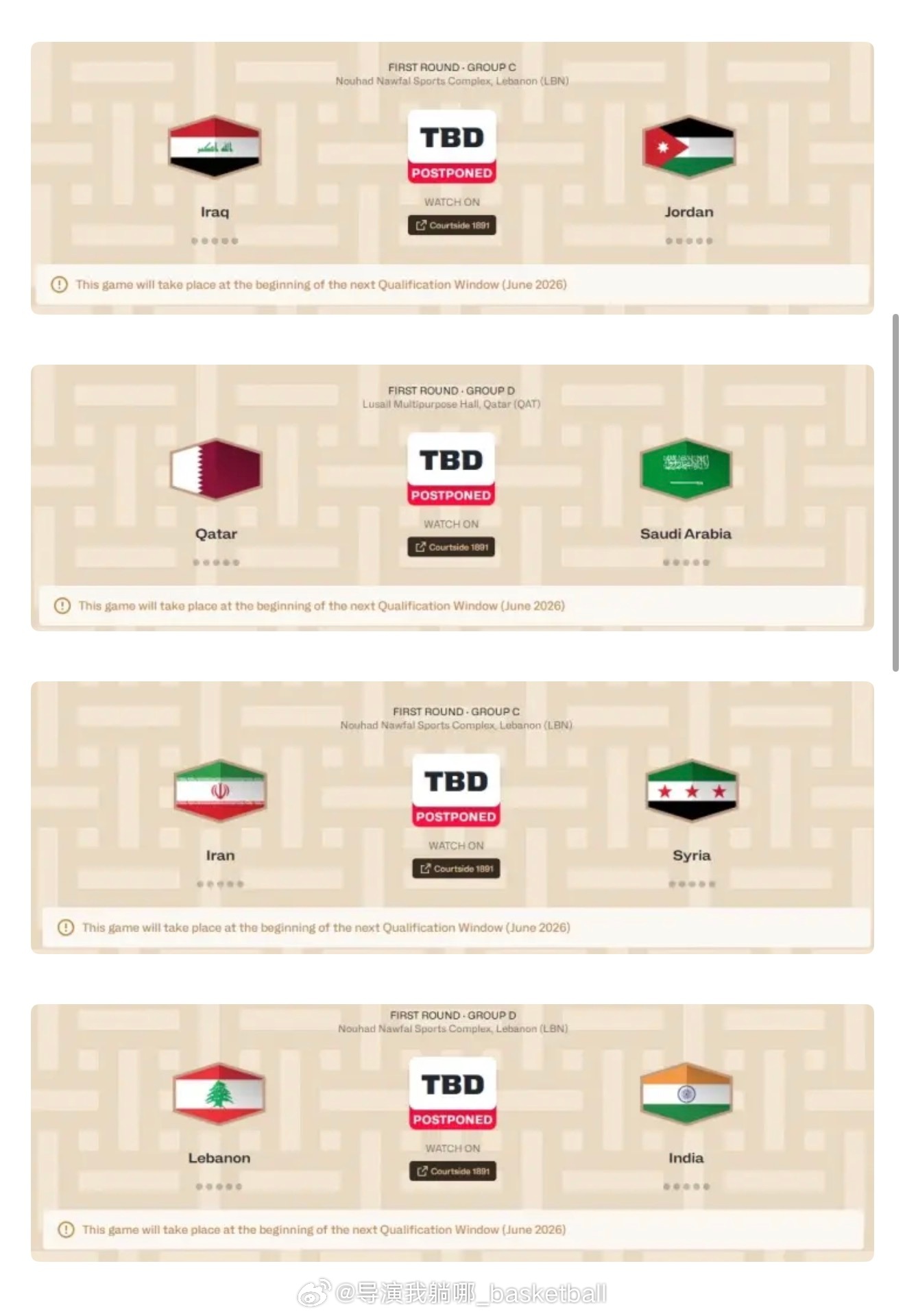 愿世界和平吧,原定明天在西亚开打的四场男篮世预赛比赛已经被推迟哈梅内伊遇害