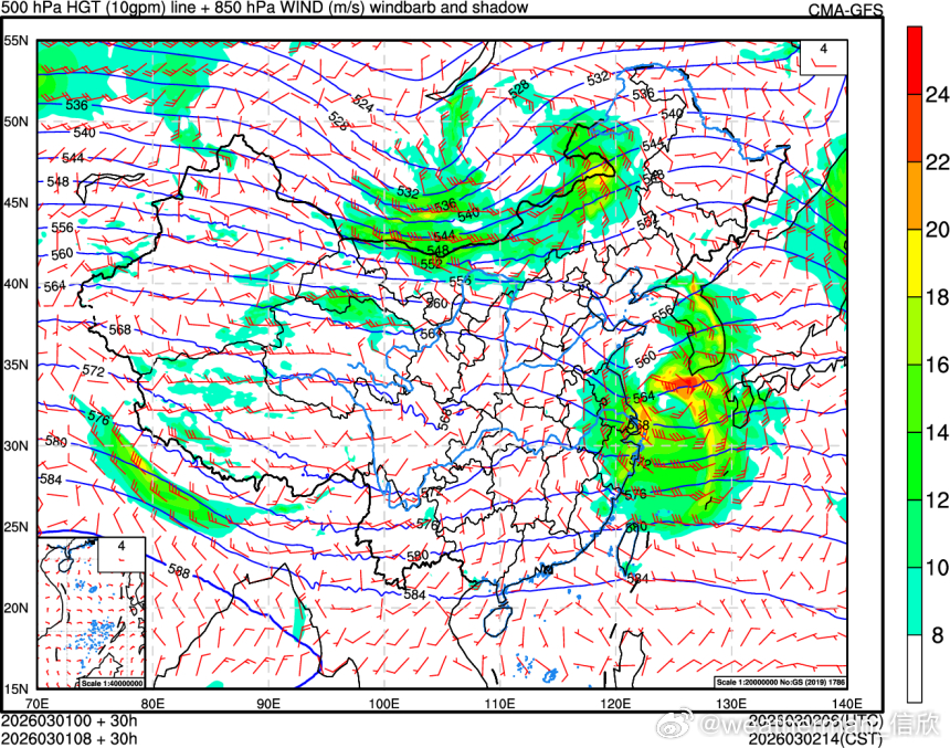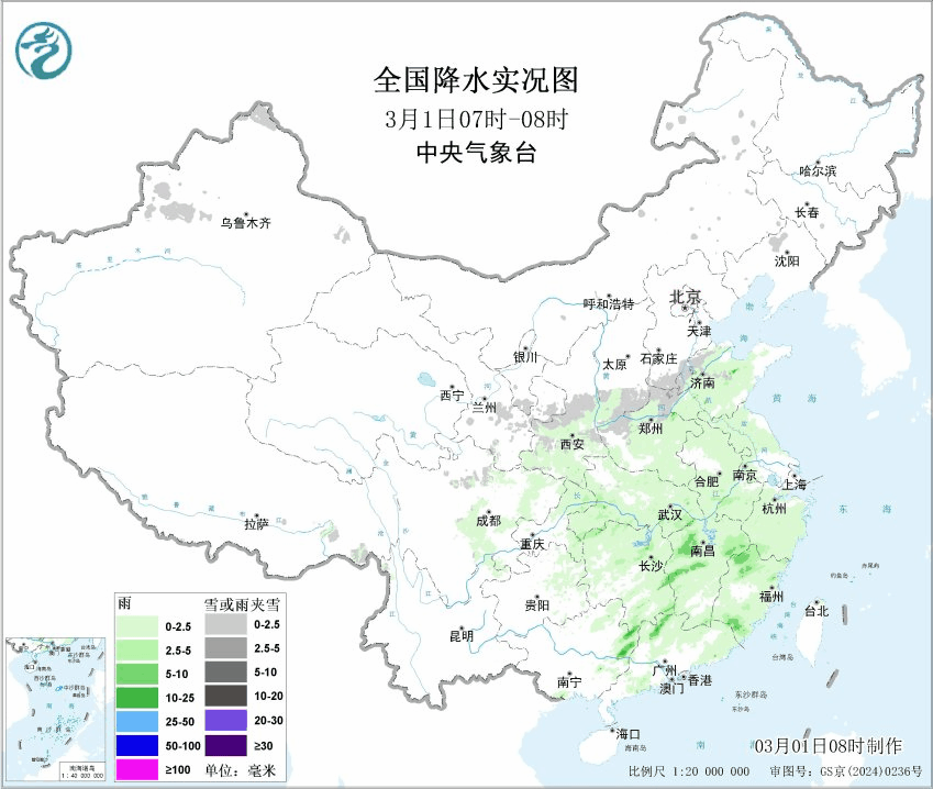 预计3月1日14时至3月2日14时,山西中南部、河北中南部、山东西北部、河南北部等地区有大雪,其中山西东南部、河北南部、山东西北部、河南北部等地部分地区有暴雪(10~16毫米)。上述部分地区新增积雪深度3~8厘米,局地可达10~15厘米。此外在低涡东侧和南侧,江苏上海浙江福建江西广东等地还有中到大雨。