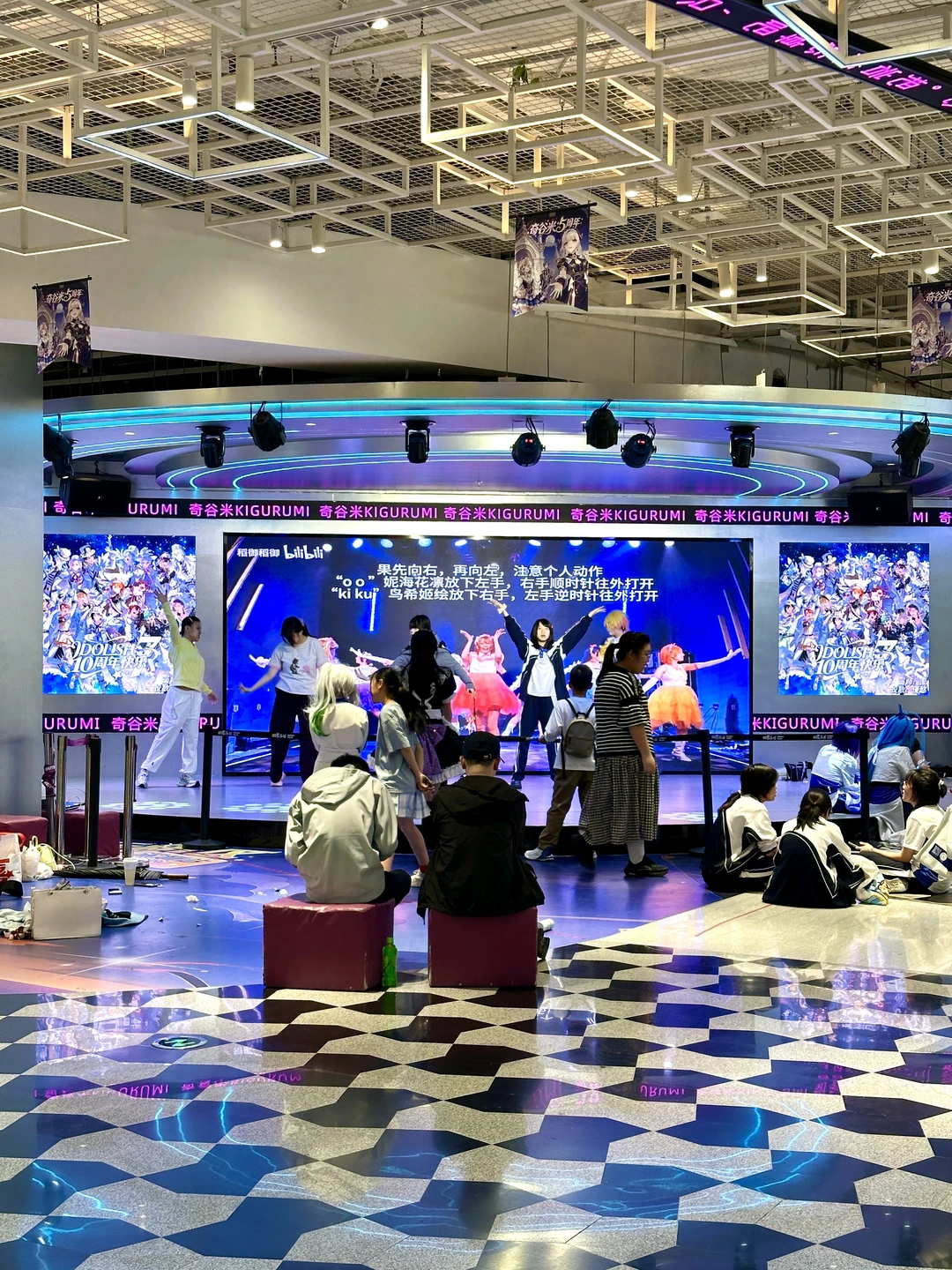 就在深圳奇谷米次元街区 2 楼哦 9 号线深圳湾公园🚇E 口附近 来了先去舞台中心打卡 IDOLISH7 十周年大屏哦 舞台中心三个大屏都有!!! 现场还有追番室可以直接进去观影 活动氛围真的很棒👍很适合二次元同好团建 非常期待下一次观影活动哦(´-ω-`) 街区里面还有市集,也有舞蹈室 设备好齐全,也可以提前预约来这里举办活动👌