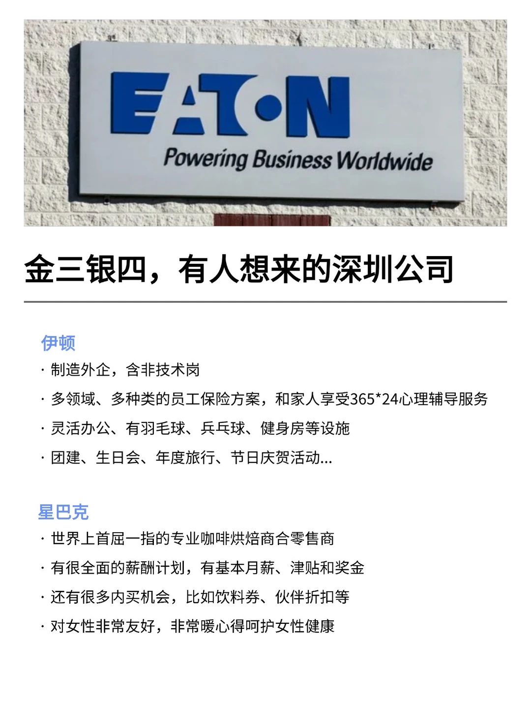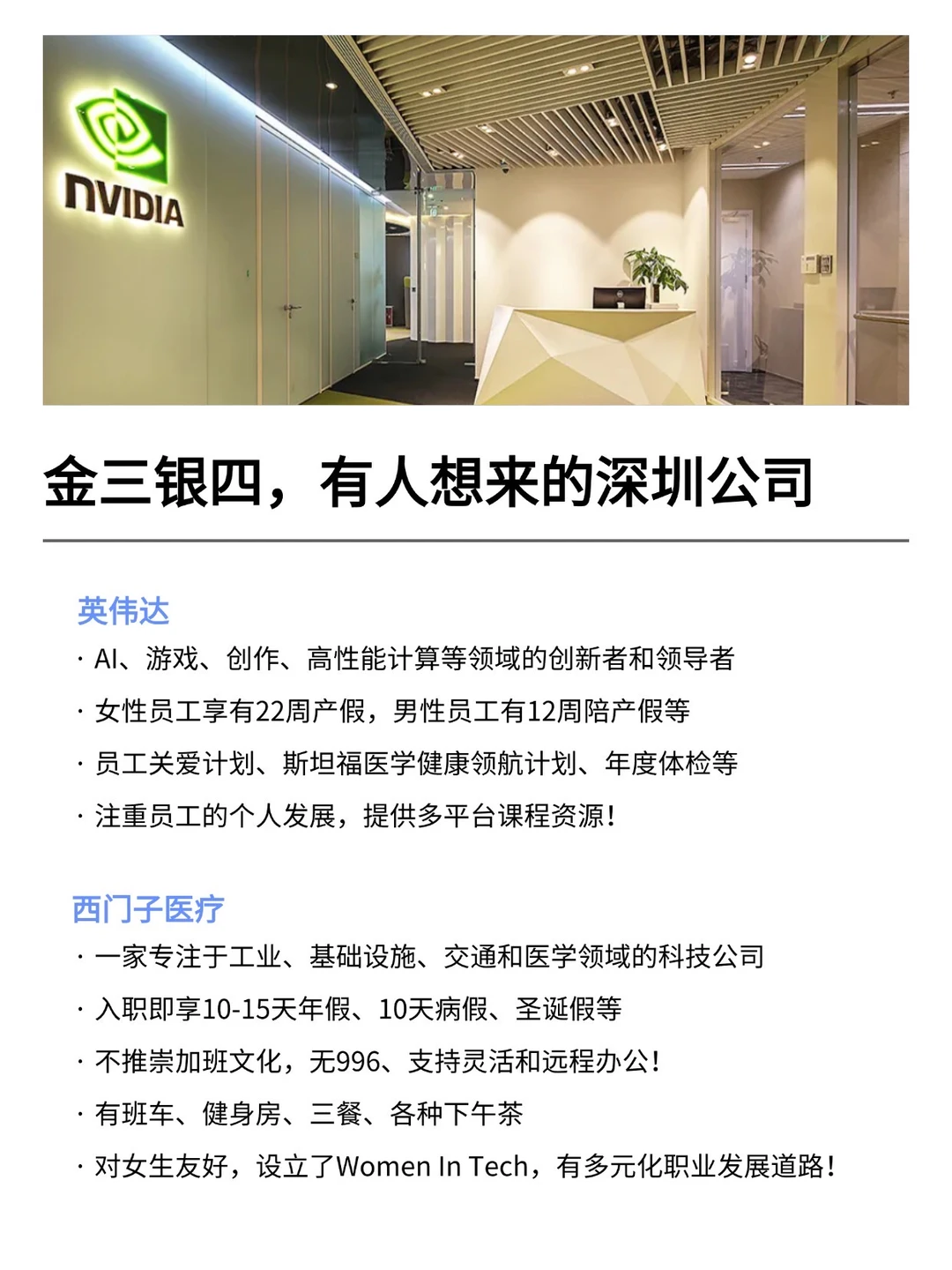 深圳发展真的越来越好,有不少小而美、冷门宝藏的公司,金三银四是真的很多的机会! 特别是有不少小众冷门的外企,真心建议大家可以去试试 · 大家不要觉得外企很难进 其实外企也有一些常规类、英语要求没有那么高的岗位 · 为什么还是值得去外企? ▪️氛围好,对女性友好,年假长,平均年假都是15天 ▪️还支持居家办公、福利完善,是真的能实现WLB ▪️待遇也还不错,年后找工作的真的可以考虑考虑~ · 坚持日更,帮大家在找工作路上顺利拿 offer! ·